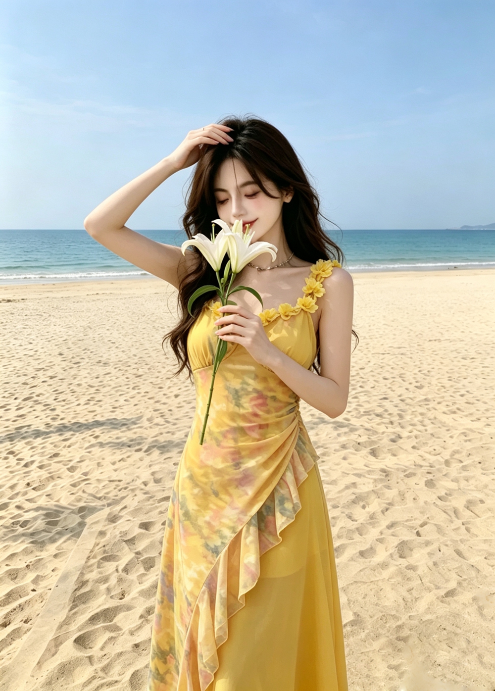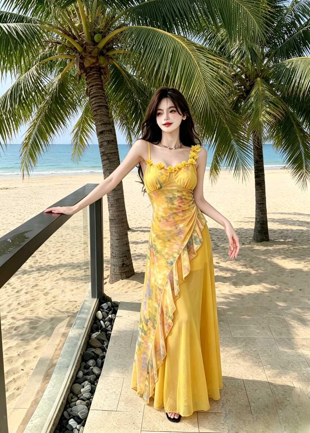 실사 해변가 휴가 슬립 해변 드레스 꽃 섬 아름다운 해변 드레스 여행 길다 치마 여성 의류