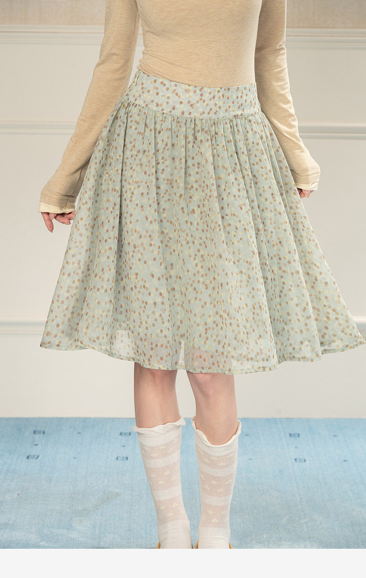 휴가 바람 도트 무늬 하이웨이스트 반신 스커트 여성 봄 여름 새로운 작은 청신 녹색 캐주얼 연령 감소 짧은 치마