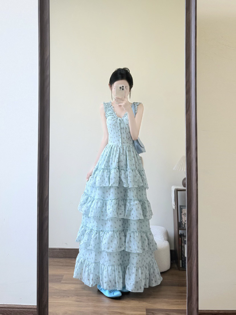 4.3 신제품 westayone 박하 녹색 꽃무늬 여성 드레스 여름 2026 새로운 작은 키 롱 스커트