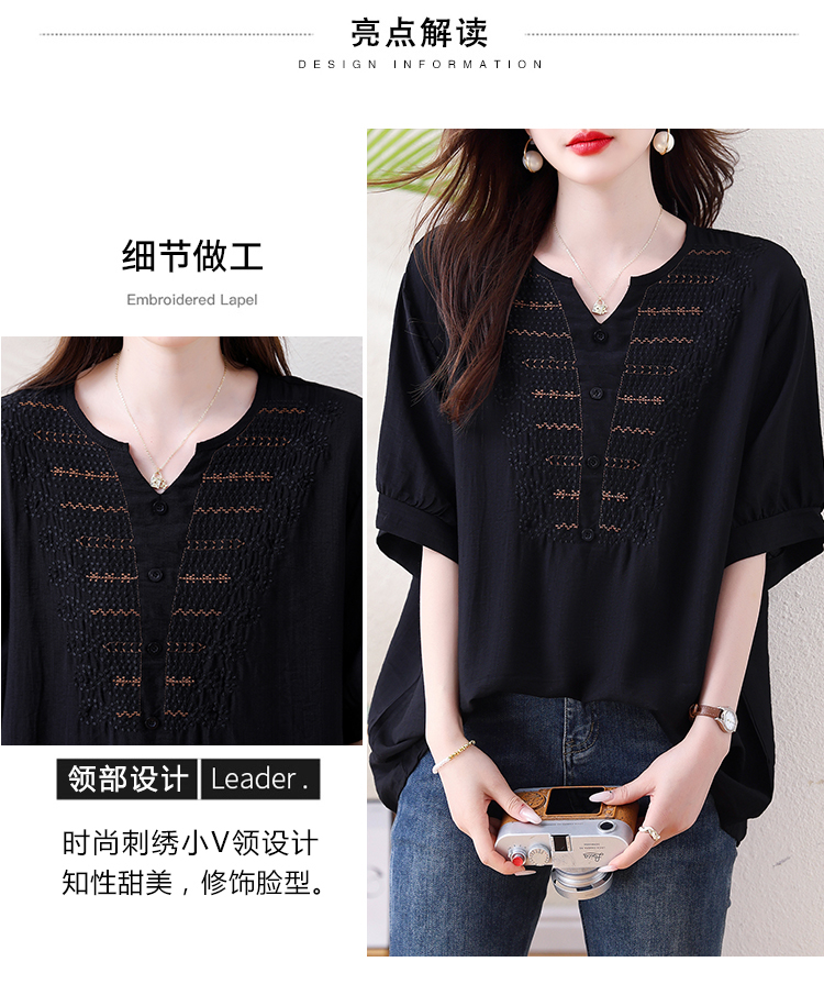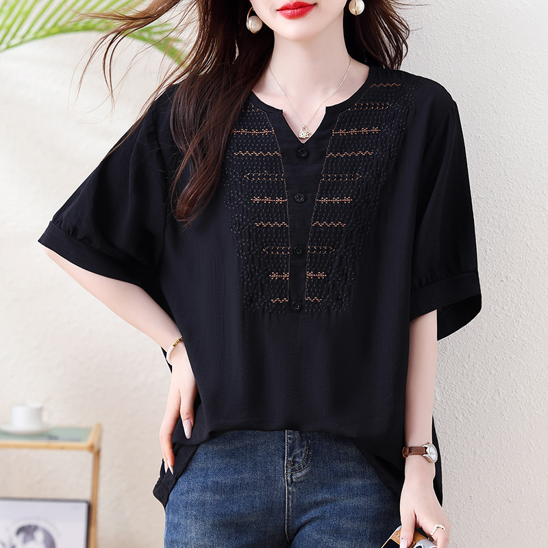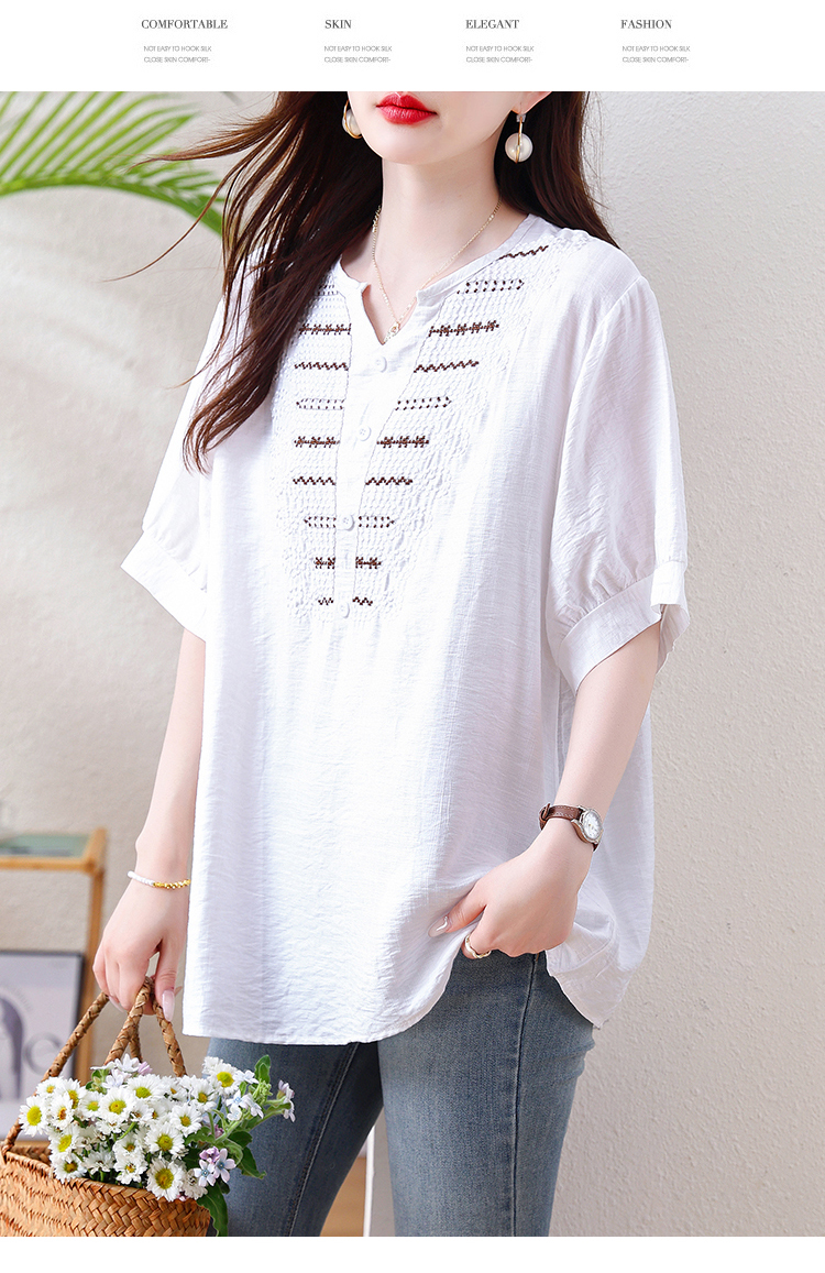 레트로 고급 자카드 자수 루즈핏 맨위 여성 여름 빅 사이즈 통통한 여동생 우아함 품격 슬림해 보이는 다용도 셔츠