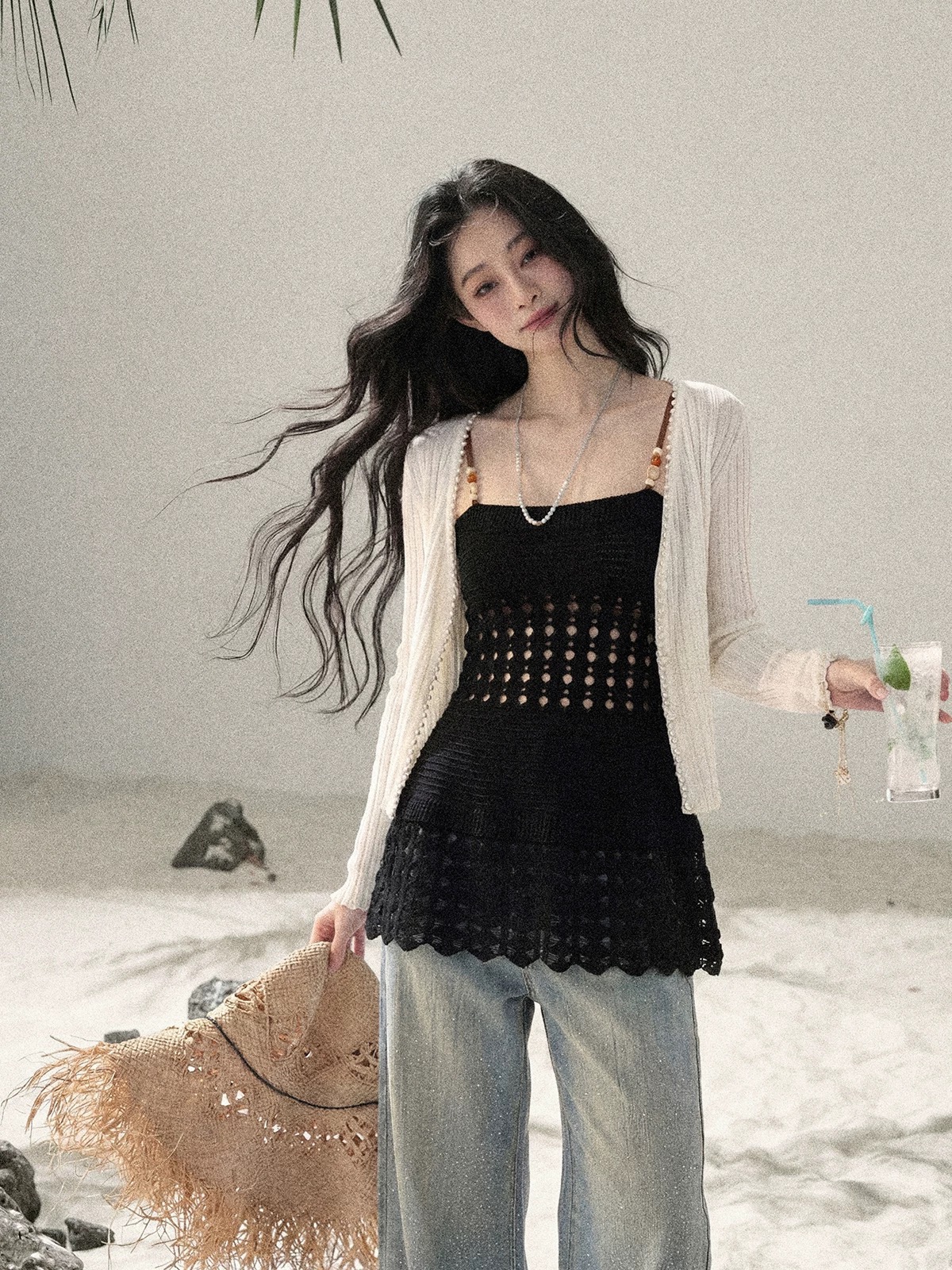 프랑스식 레트로 부드러운 바람 홀로우 아웃 니트 슬립 여성 여름 2026 새로운 디자인 센스 슬림해 보이는 외출용 민소매 맨위