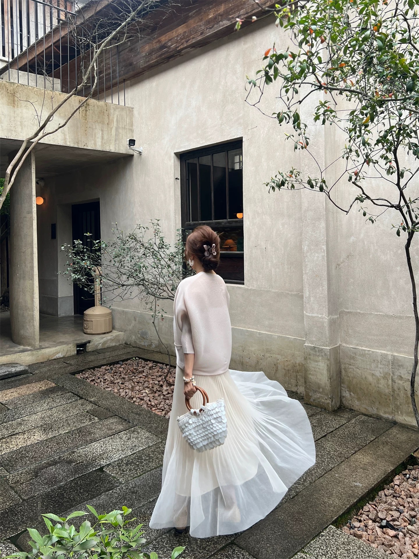 momo 대 자매 고급 센스 유럽 오간자 플리츠 스커트 여성 2026 봄 새로운 루즈핏 슬림해 보이는 반신 스커트 롱 스커트