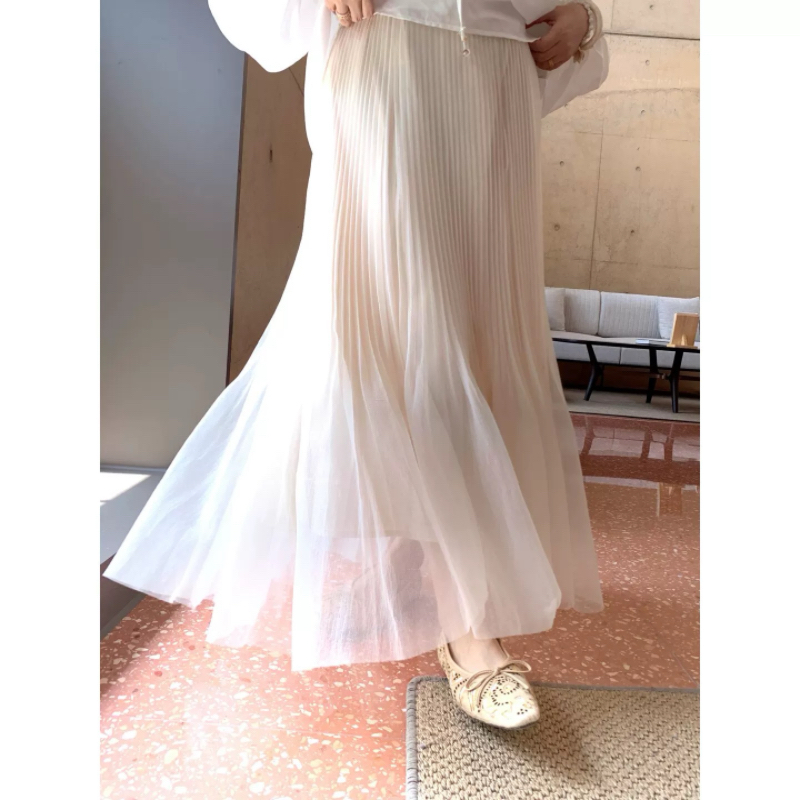 프랑스식 망사 플리츠 반신 스커트 여성 2026 새로운 여름 슬림해 보이는 하이웨이스트 반 스커트 다용도 반신 롱 스커트 여자