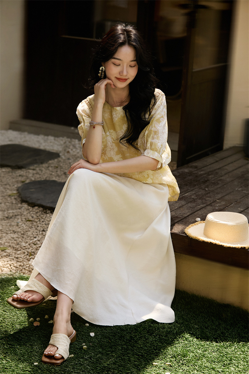실사 고급 센스 품격 주간 실크 코튼 여성 드레스 2026 여름 새로운 루즈핏 슬림해 보이는 통기성 휴가 롱 스커트