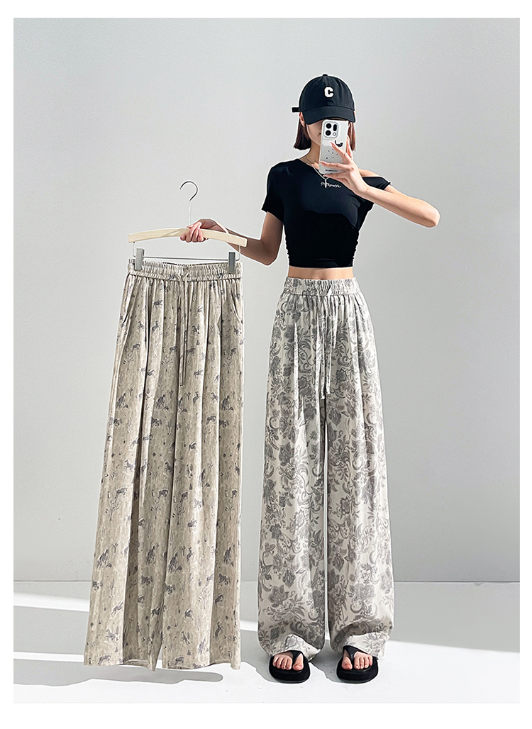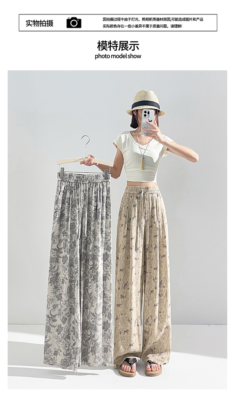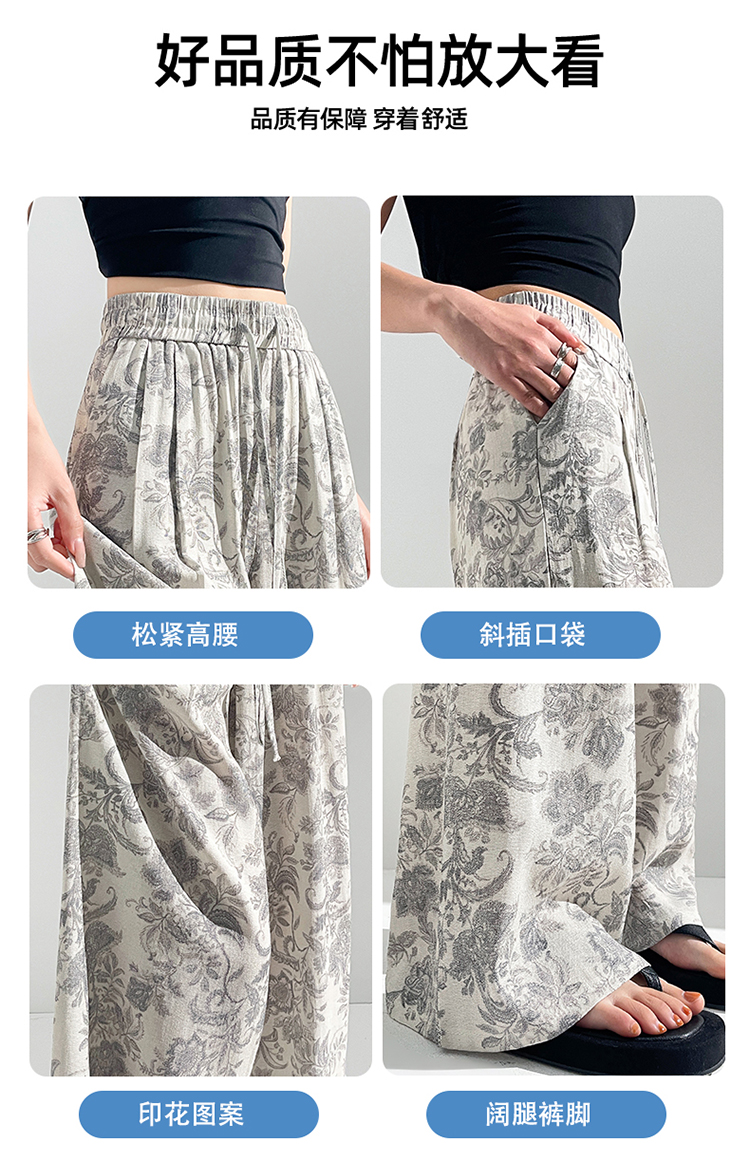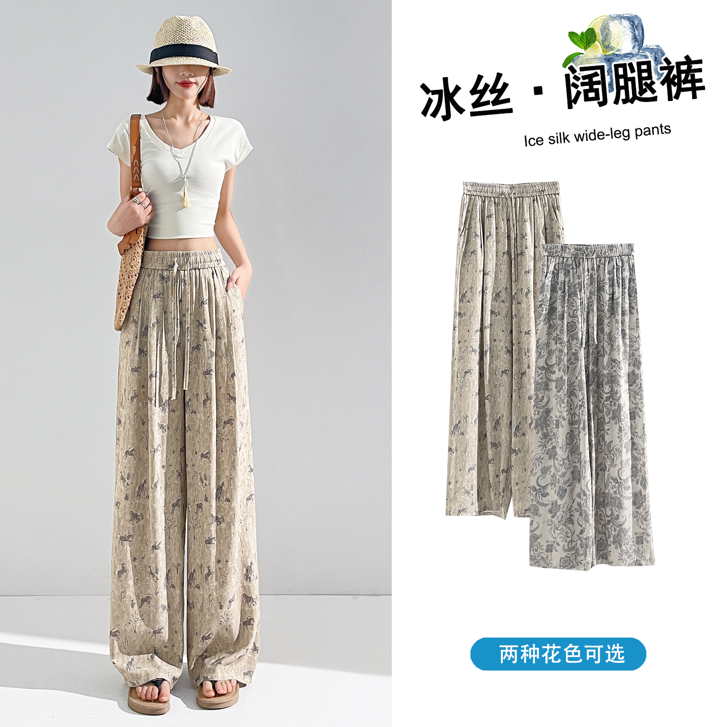 실사 얼음 실크 꽃밭 속도 건조한 배기 바지 여성 2026 여름 얇은 스타일 하이웨이스트 작은 키 9 포인트 넓은 다리 풍선 바지