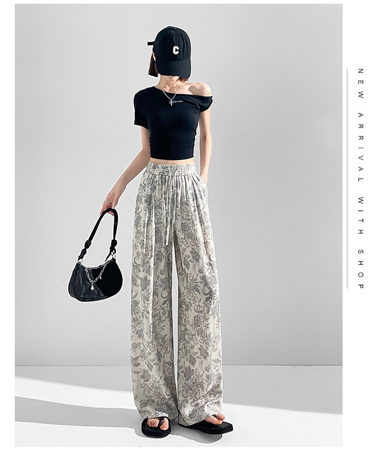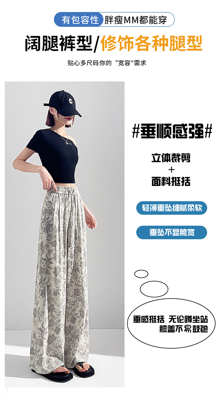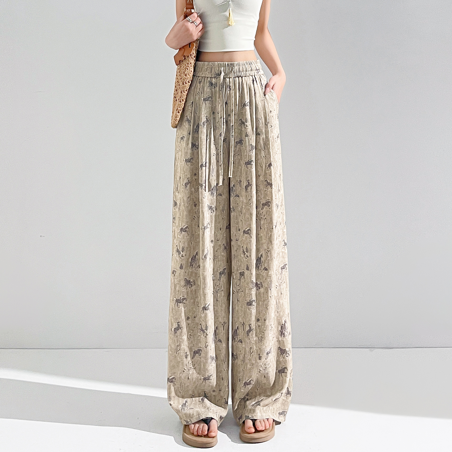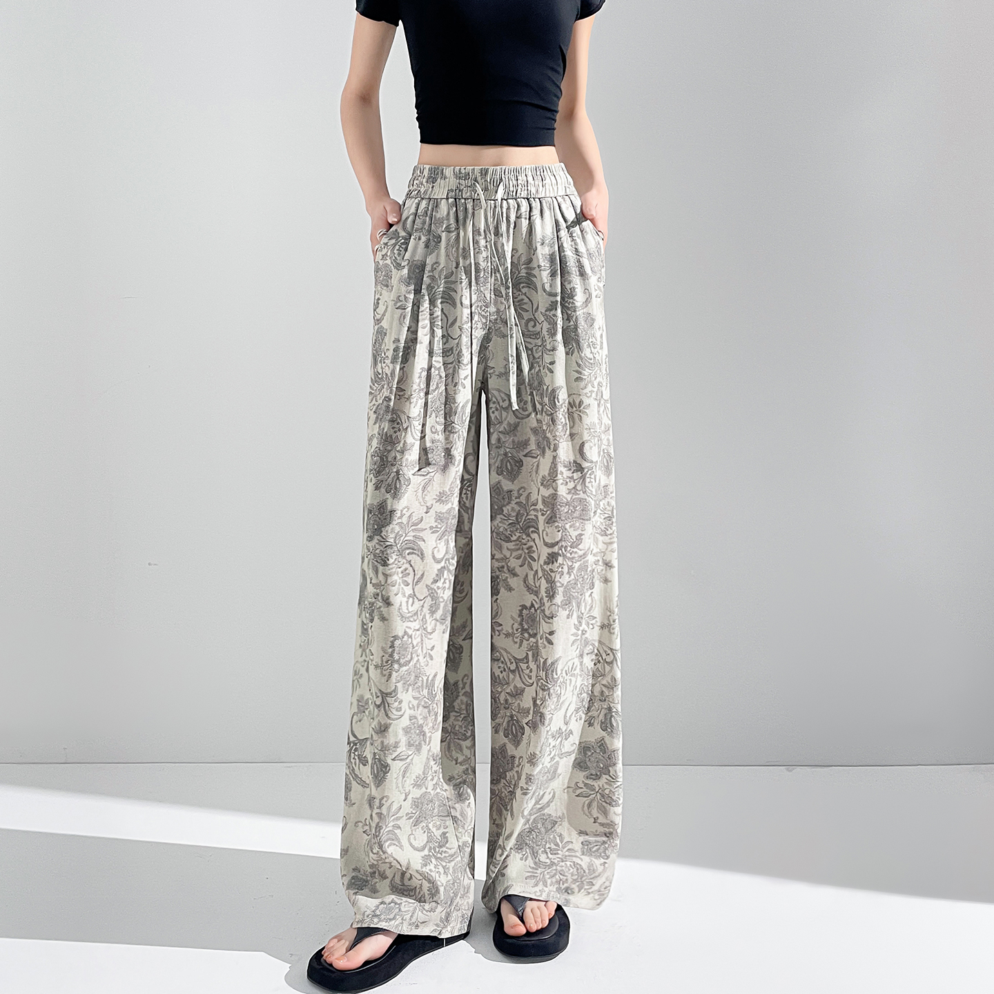 실사 얼음 실크 꽃밭 속도 건조한 배기 바지 여성 2026 여름 얇은 스타일 하이웨이스트 작은 키 9 포인트 넓은 다리 풍선 바지