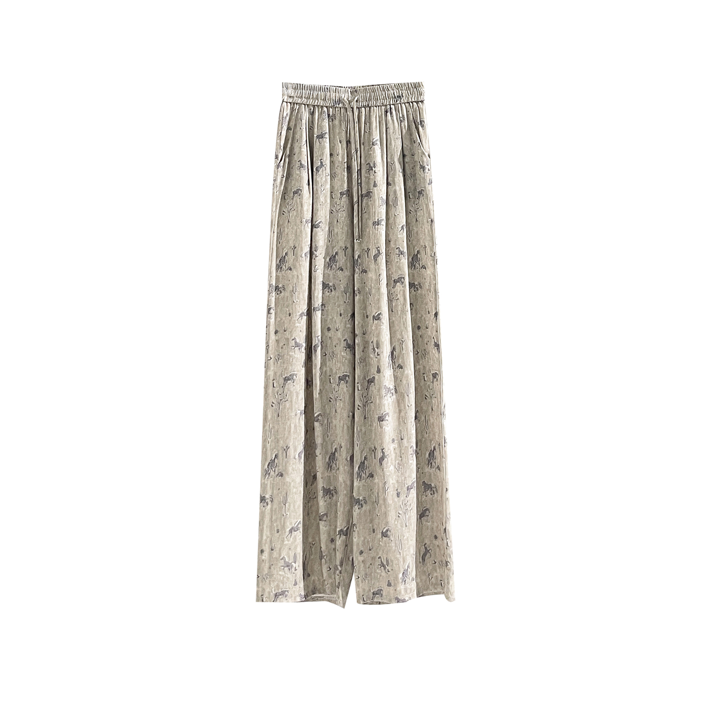 실사 2026 여름 새로운 아마 도트 무늬 캐주얼 바지 질감 센스 느긋한 얼음 실크 도루 센스 야마모토 바지 와이드 레그 팬츠