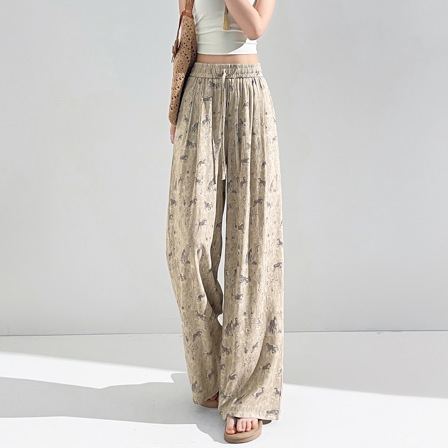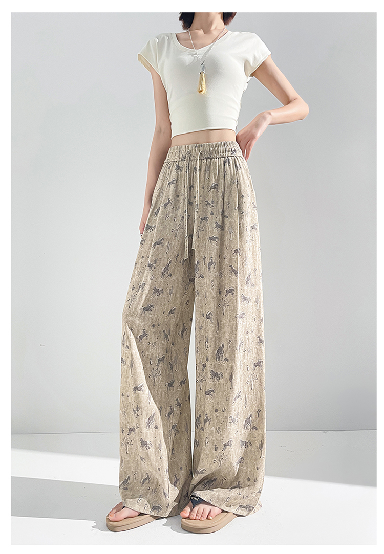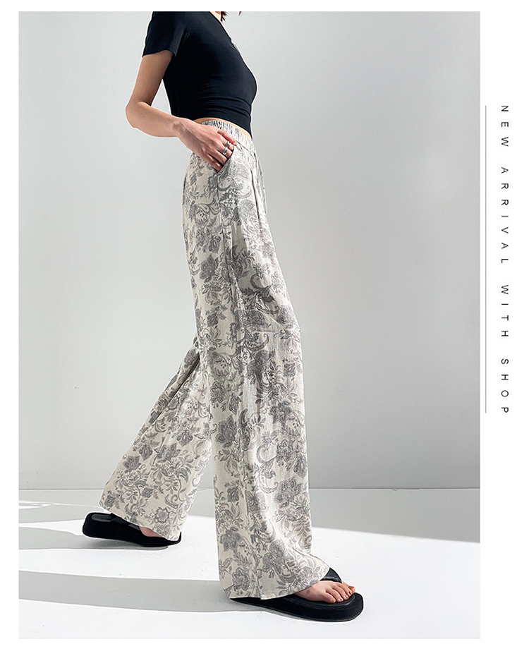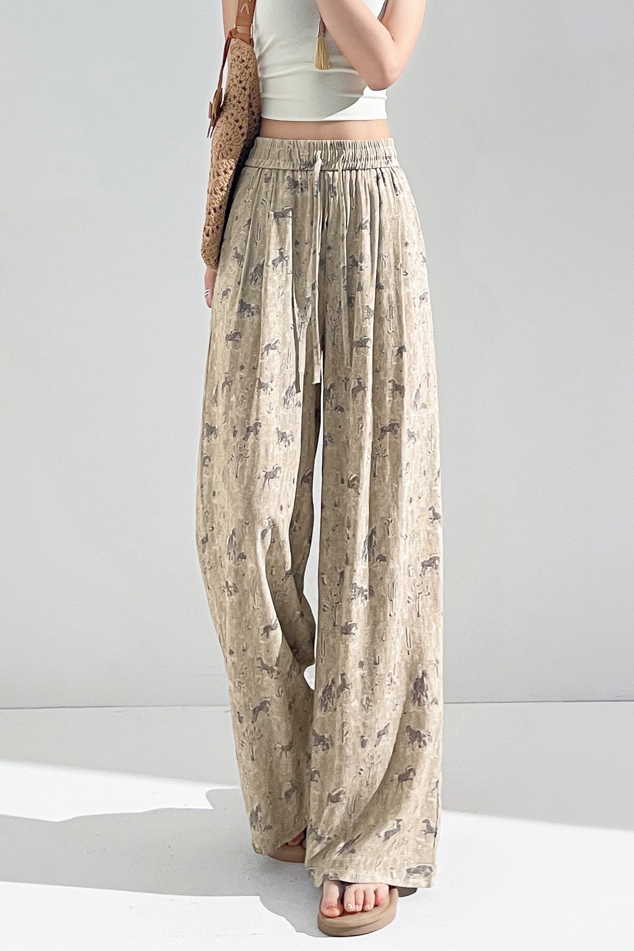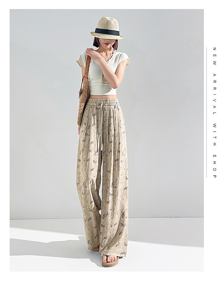 실사 레트로 프린트 면 린넨 와이드 레깅스 바지 여름 얇은 스타일 느긋한 바람 얼음 실크 아마 오래된 돈 바람 야마모토 바지