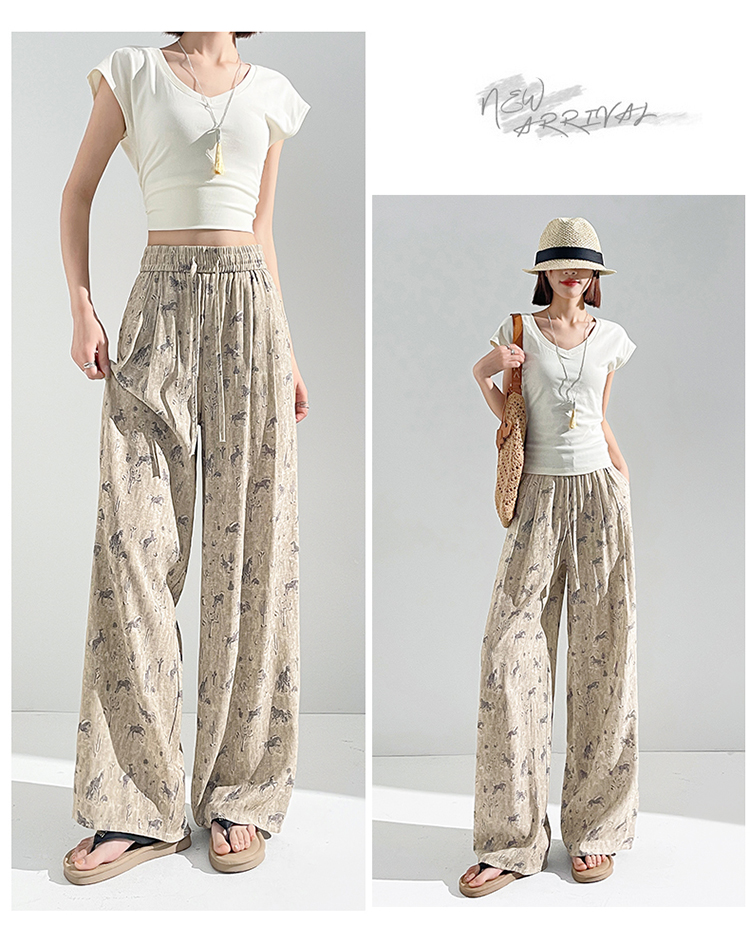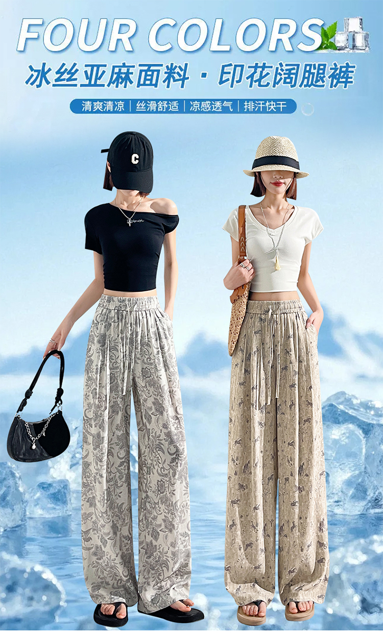 실사 2026 폭발 여름 차가운 허리 디자인 와이드 레깅스 바지 여름 느긋한 얼음 실크 면 린넨 슬림해 보이는 캐주얼 바지
