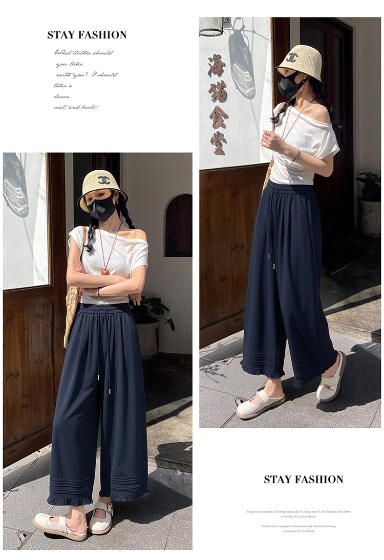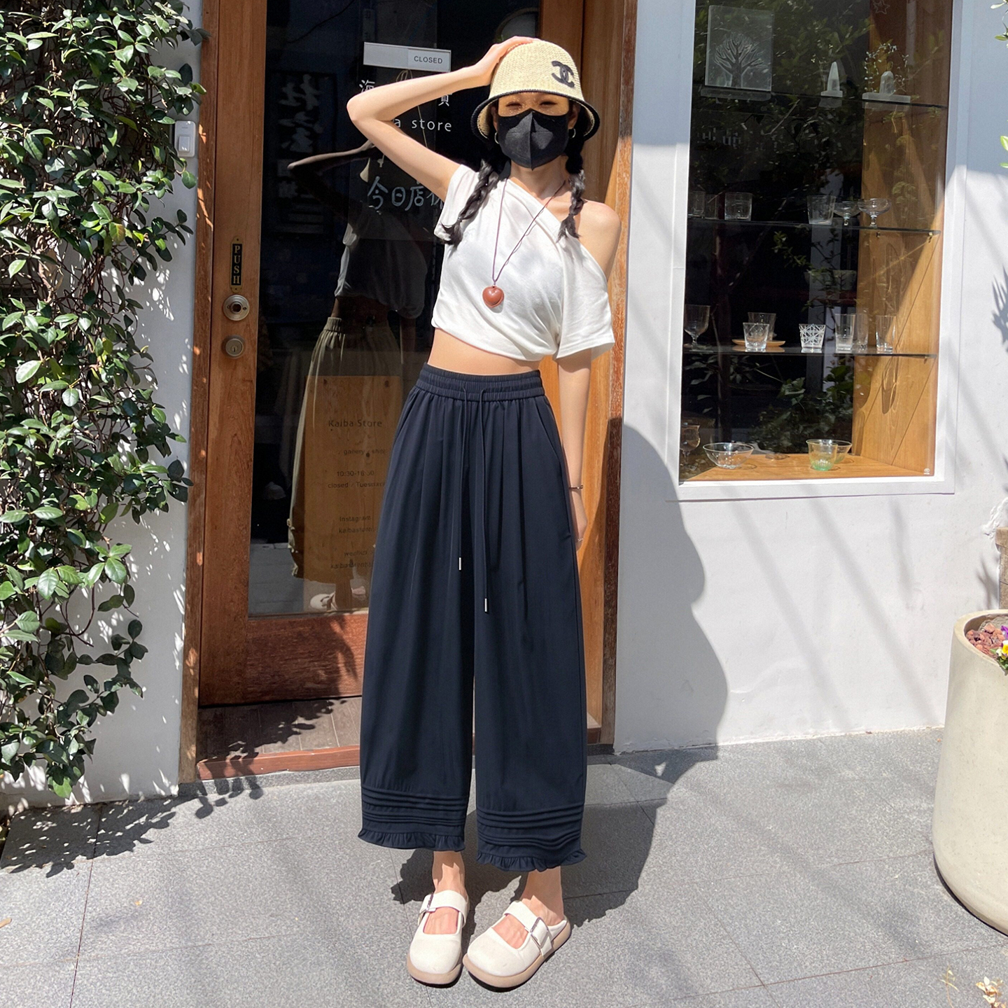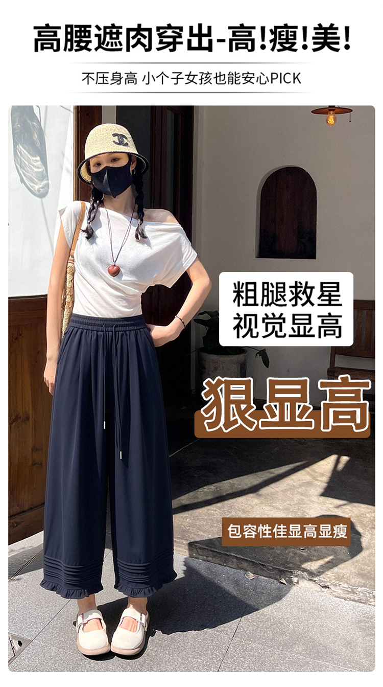 실사 여름 새로운 세븐 8 점 와이드 레깅스 바지 여름 작은 키 슬림해 보이는 다용도 도루 센스 루즈핏 스트레이트 팬츠