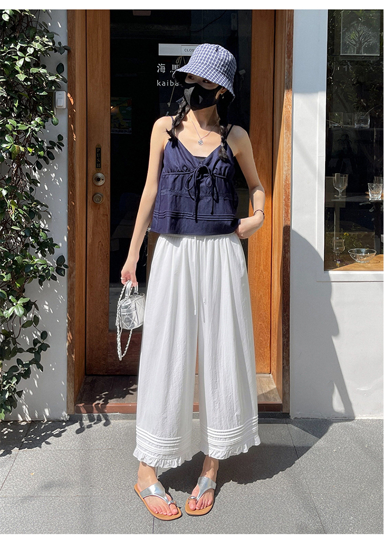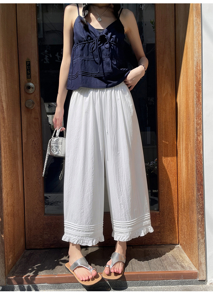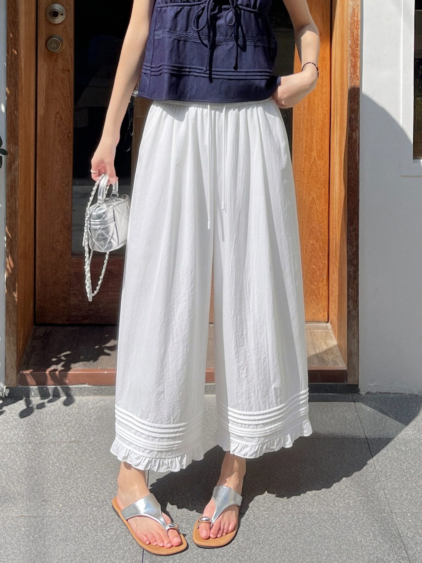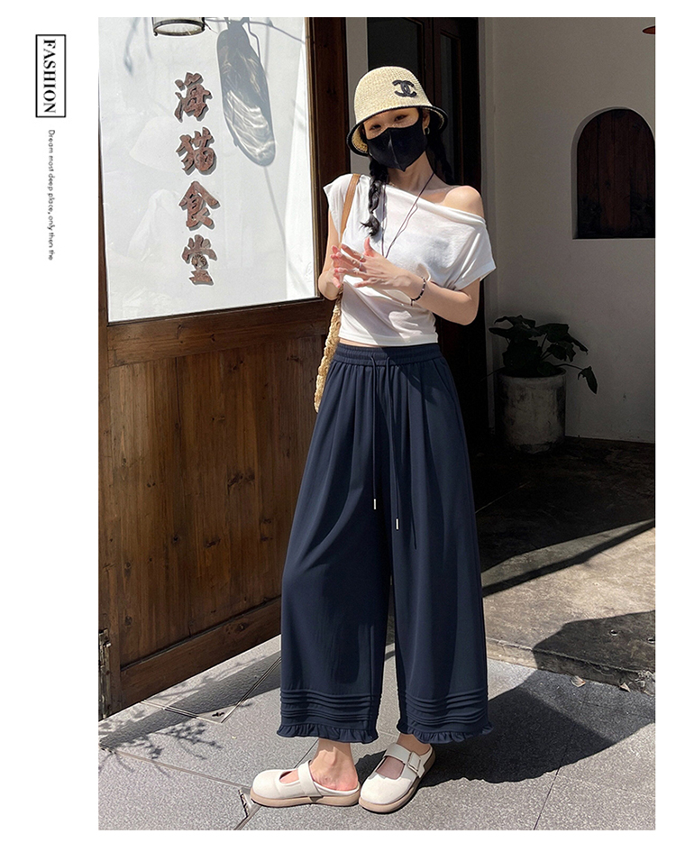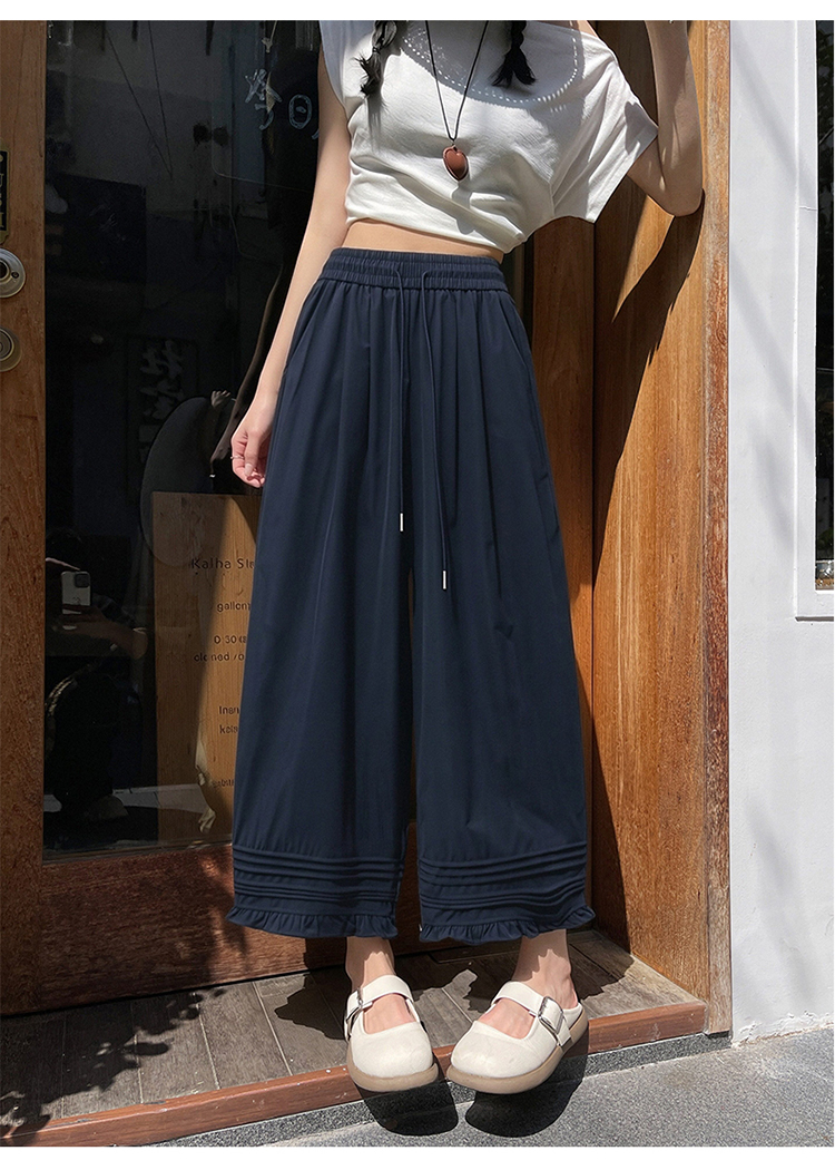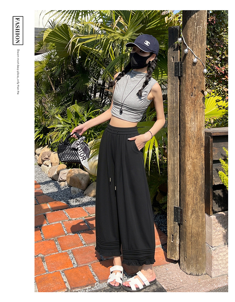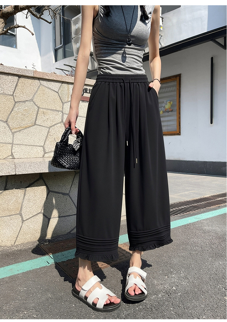 얇고 가벼운 호흡 센스 큰 진자 금액 펌프 로프 핀치 Pleat 넓은 다리 치마바지 캐주얼 바지