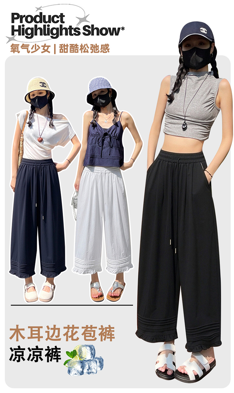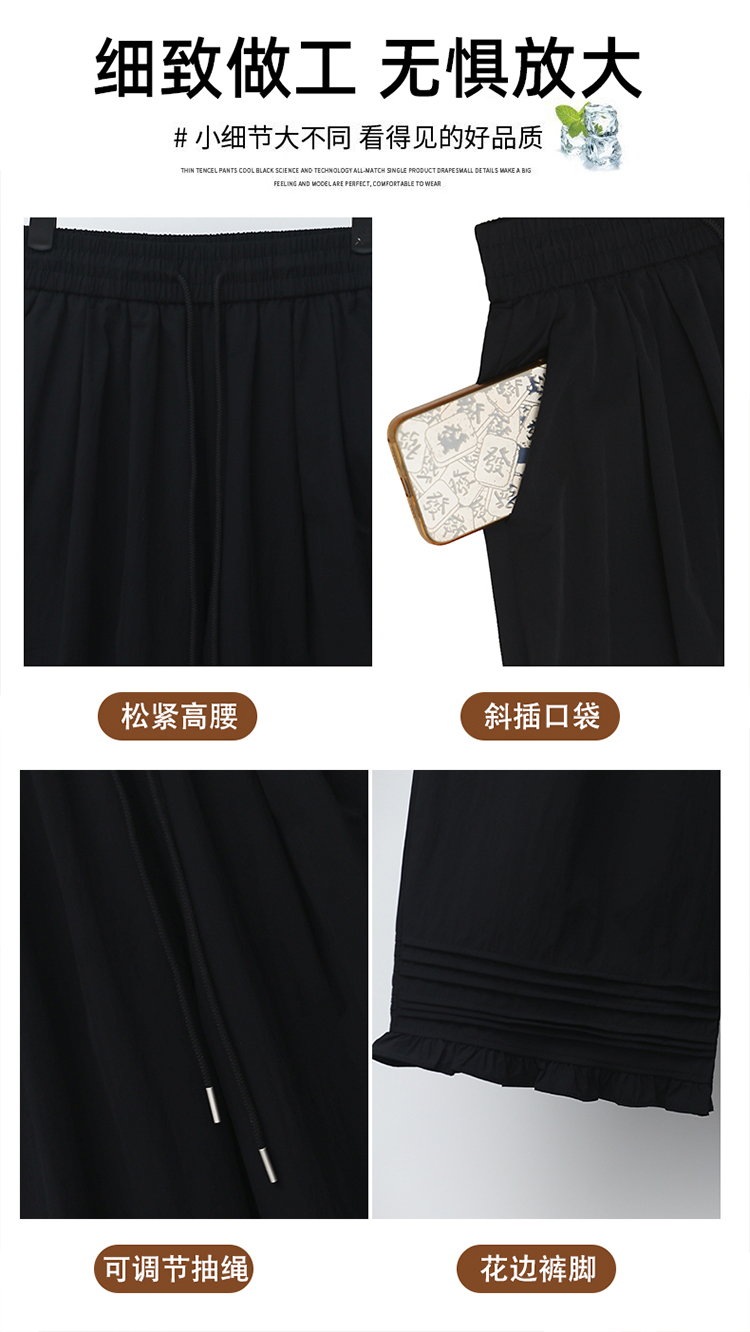 실사 2026 여름 얼음 실크 속도 건조한 캐주얼 와이드 레그 팬츠 패션 다용도 루즈핏 슬림해 보이는 9부 바지 여성