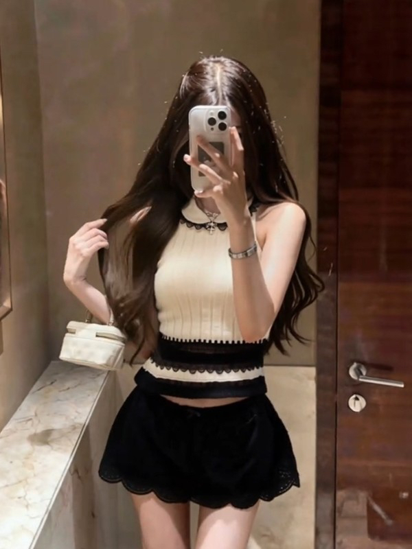 프랑스식 품격 베이비 칼라 핫걸 레이스 니트 조끼 여성 의류 2026 여름 새로운 작은 샤넬 스타일 아름다운 맨위