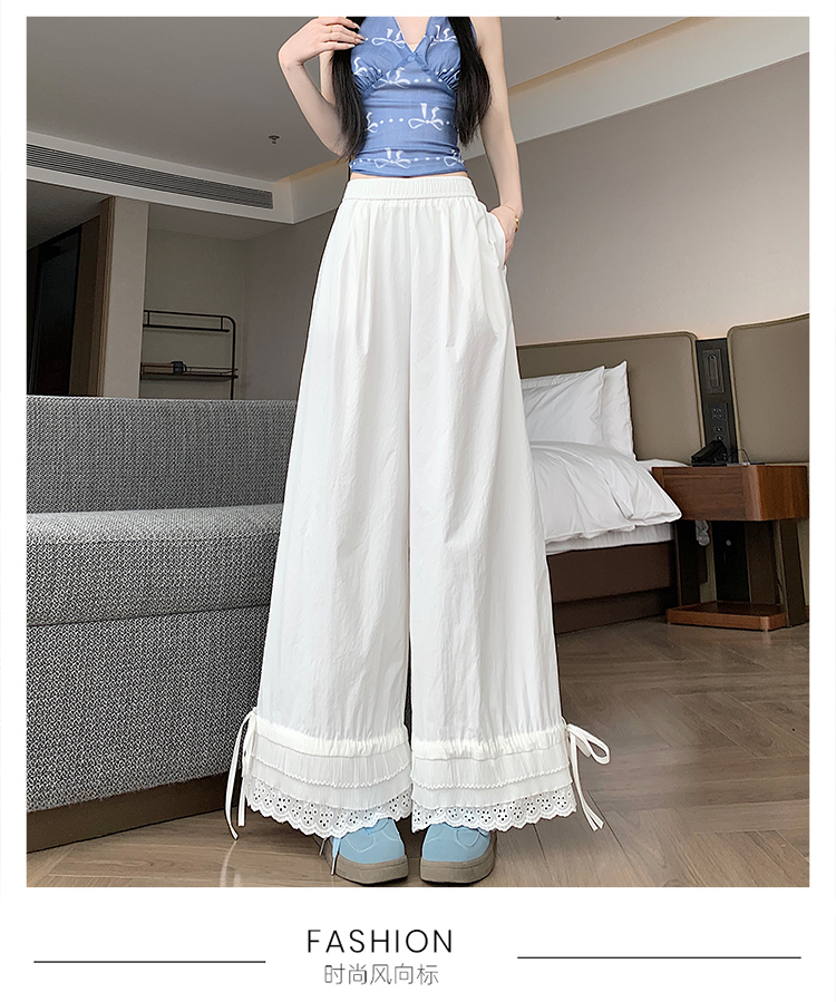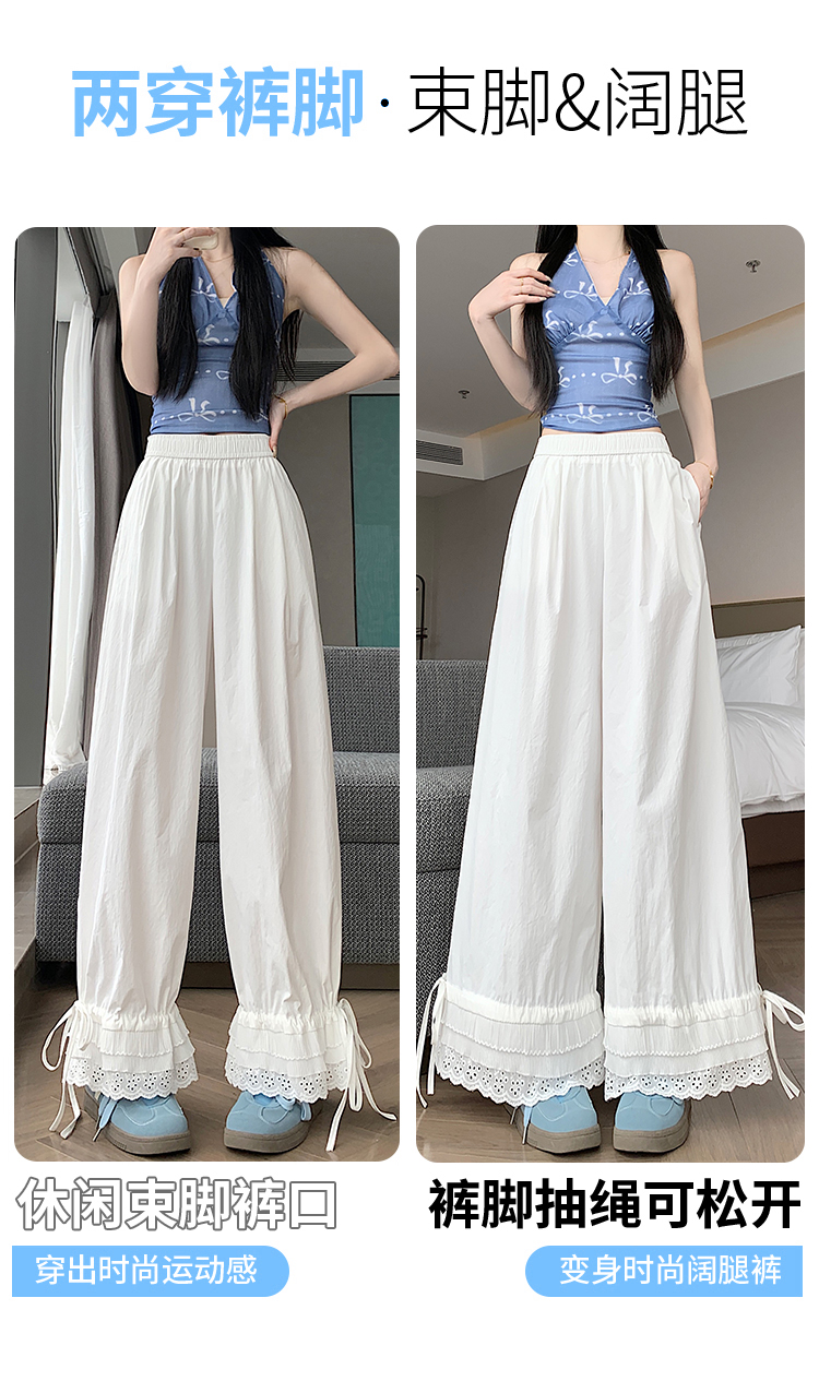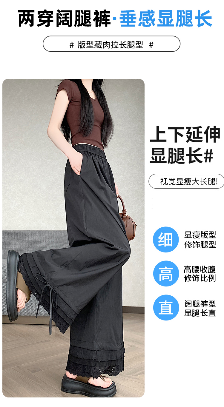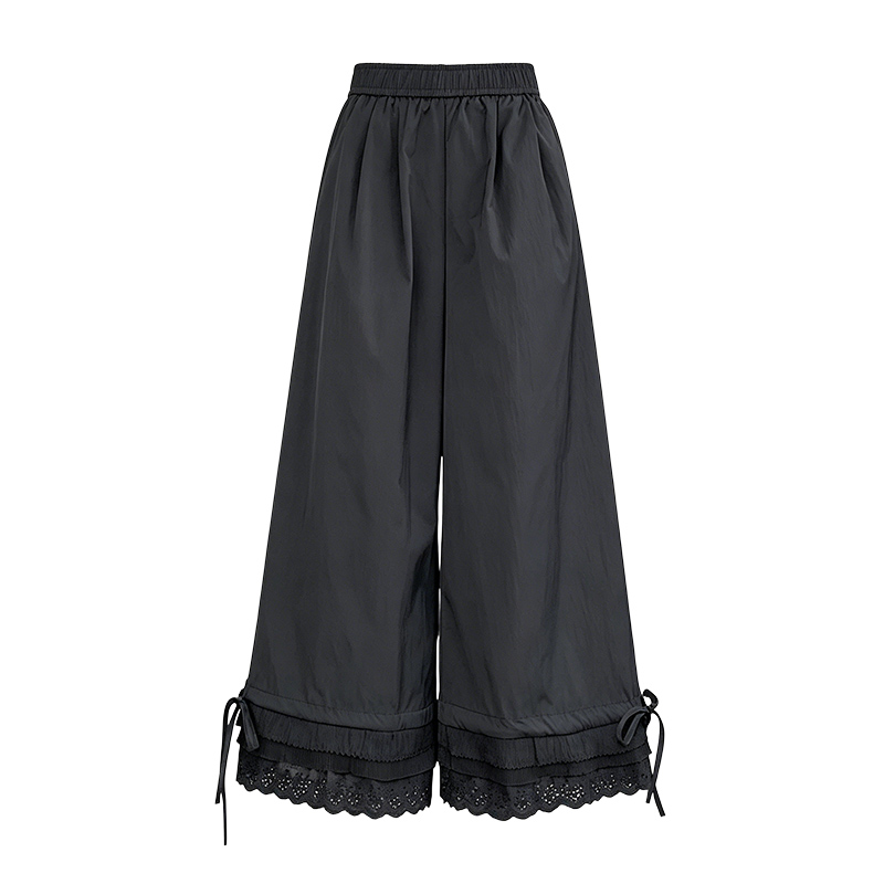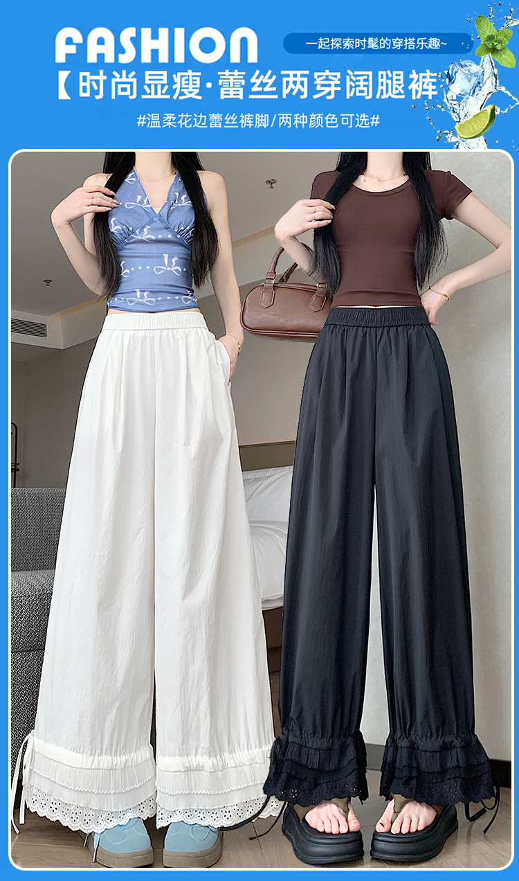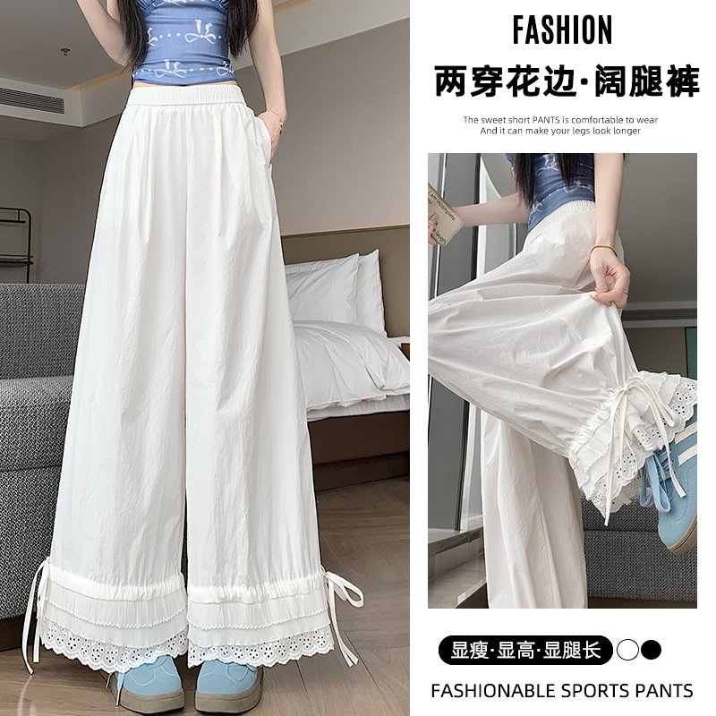 실사 레이스 레이스 패치워크 와이드 레깅스 바지 여름 섹션 둘 착용 스트레이트 팬츠 9 포인트 작은 키 루즈핏 캐주얼 바지