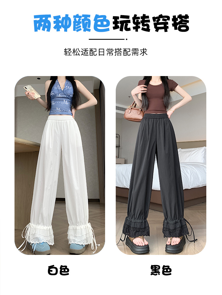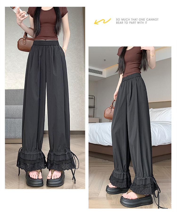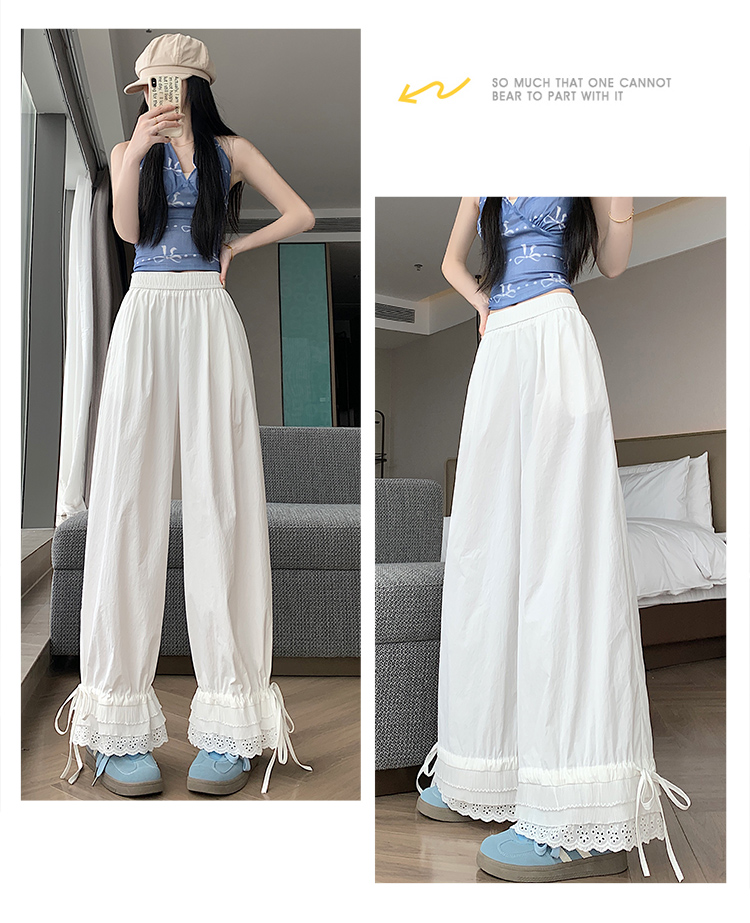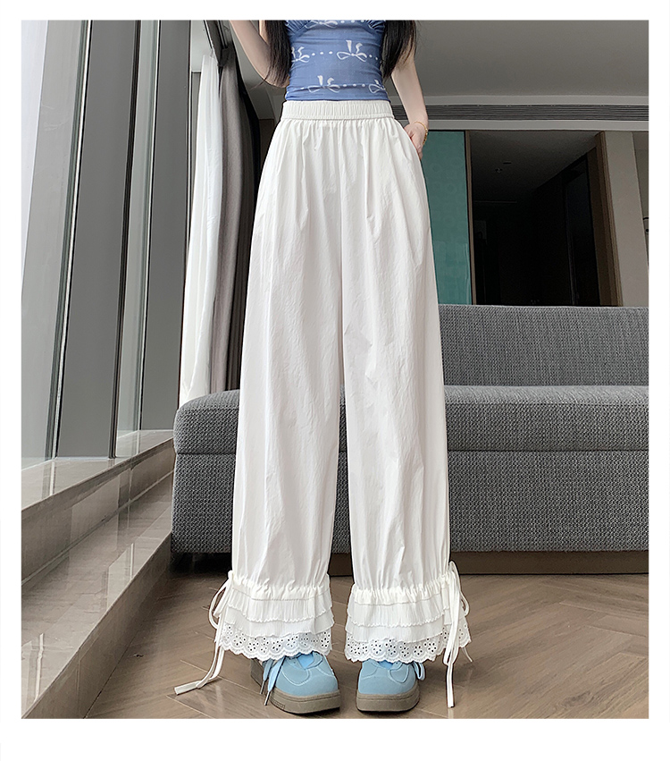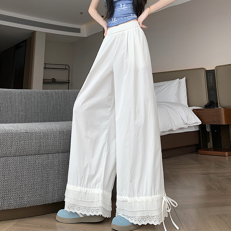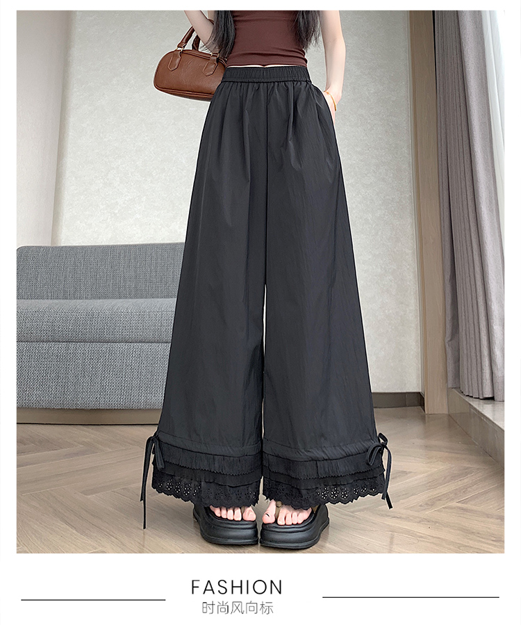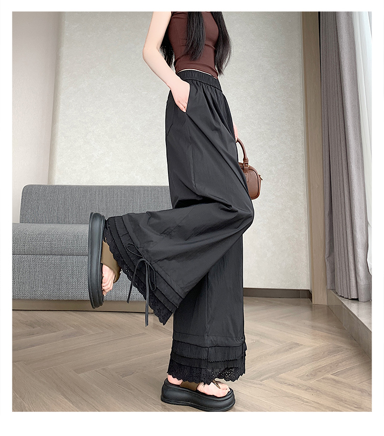 실사 레이스 레이스 패치워크 와이드 레깅스 바지 여름 섹션 둘 착용 스트레이트 팬츠 9 포인트 작은 키 루즈핏 캐주얼 바지