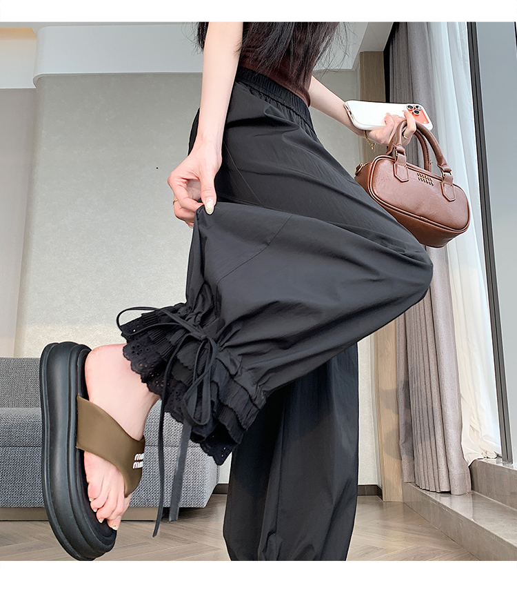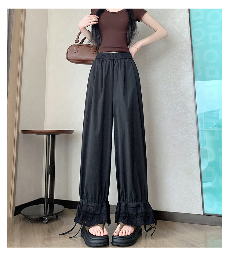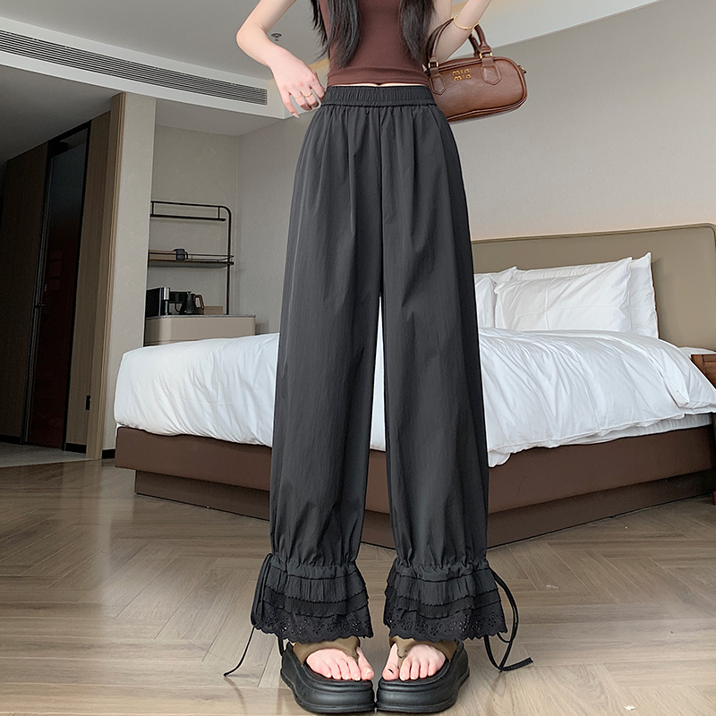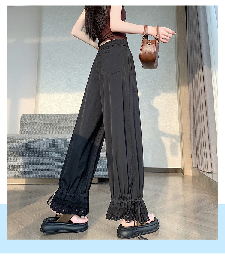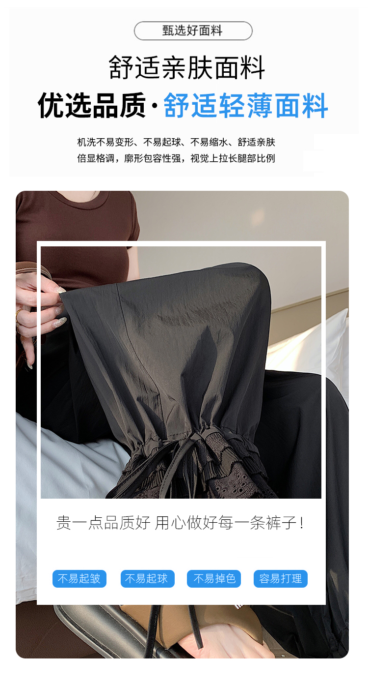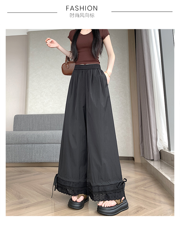실사 레이스 레이스 패치워크 와이드 레깅스 바지 여름 섹션 둘 착용 스트레이트 팬츠 9 포인트 작은 키 루즈핏 캐주얼 바지