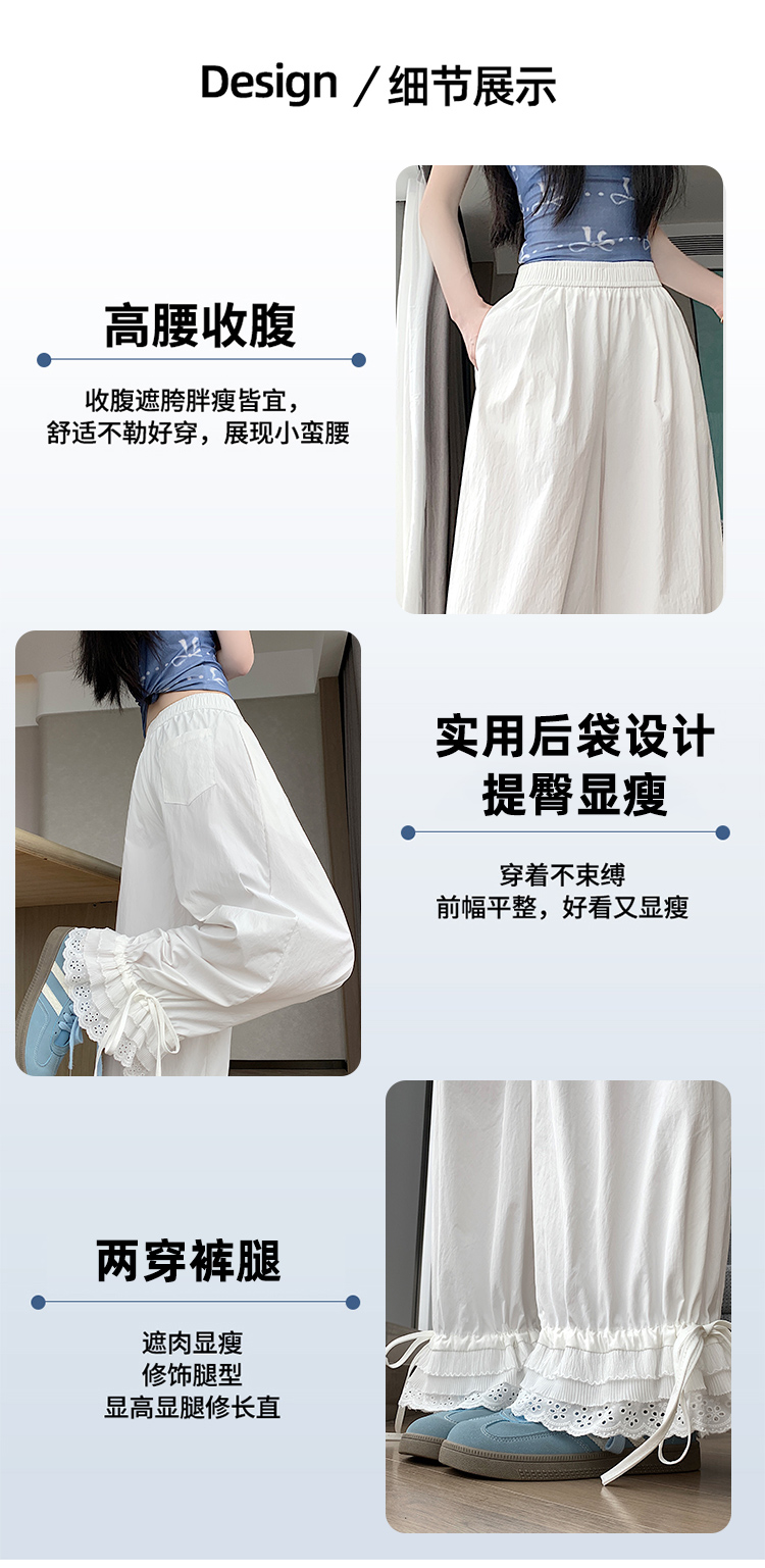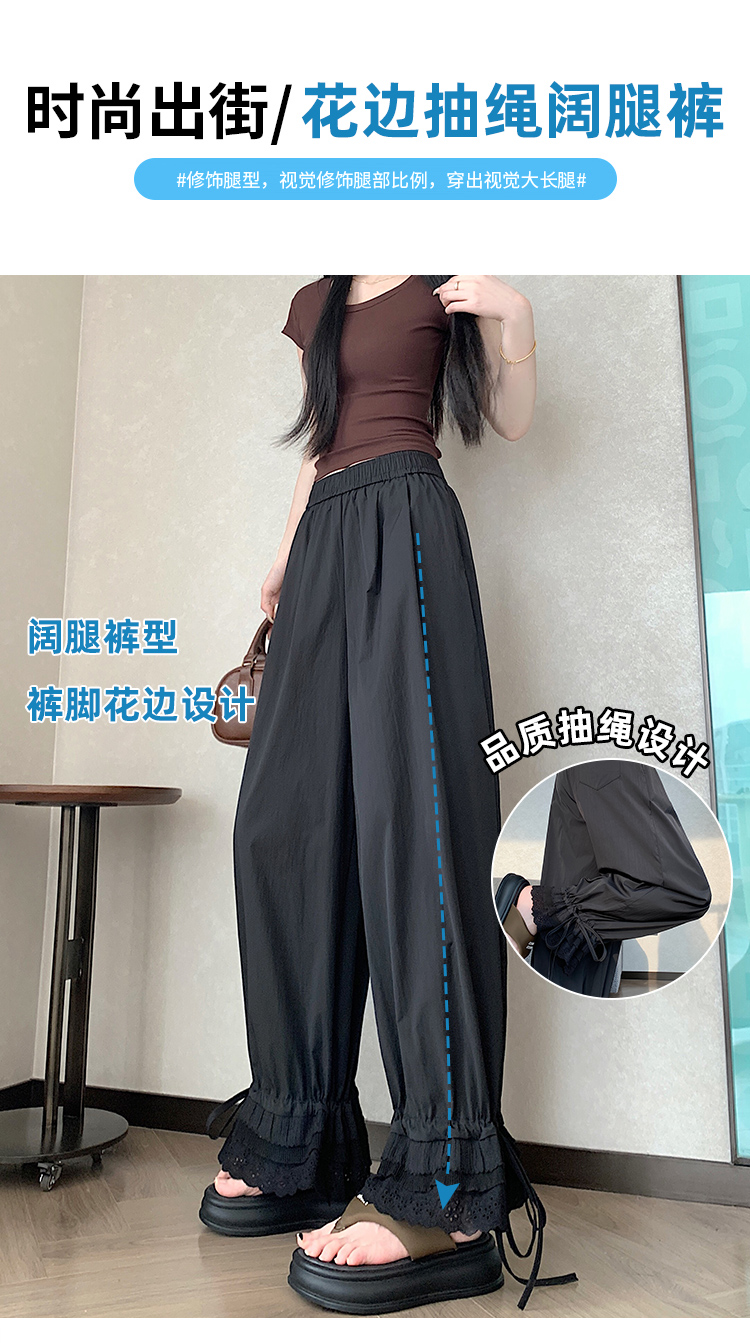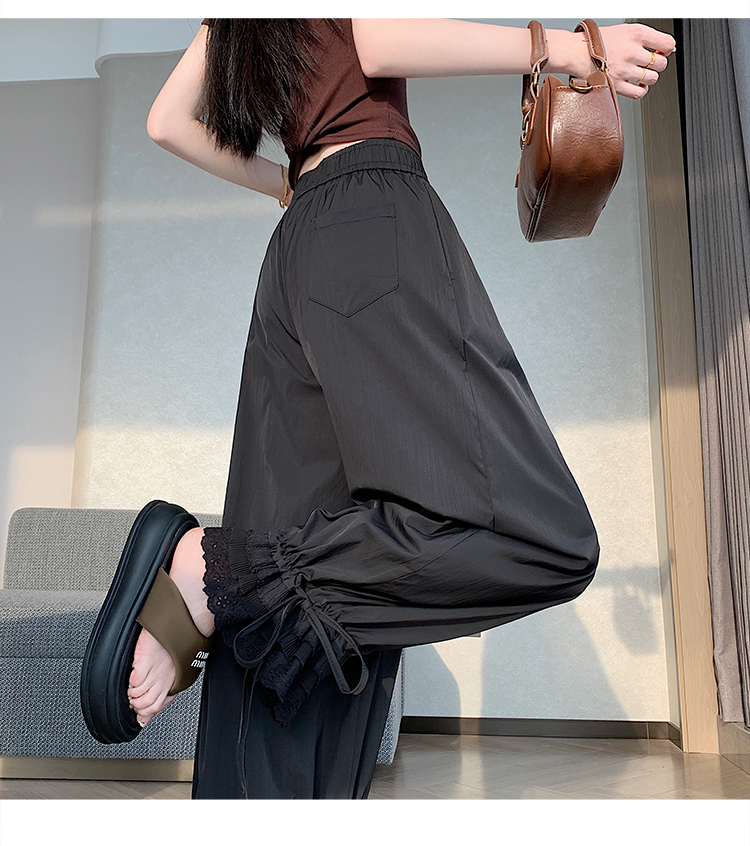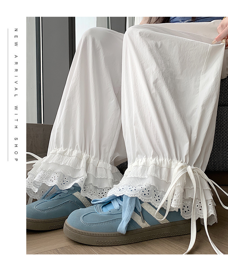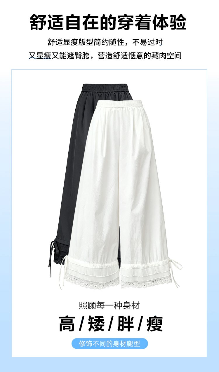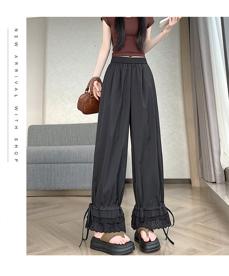 실사 레이스 레이스 패치워크 와이드 레깅스 바지 여름 섹션 둘 착용 스트레이트 팬츠 9 포인트 작은 키 루즈핏 캐주얼 바지