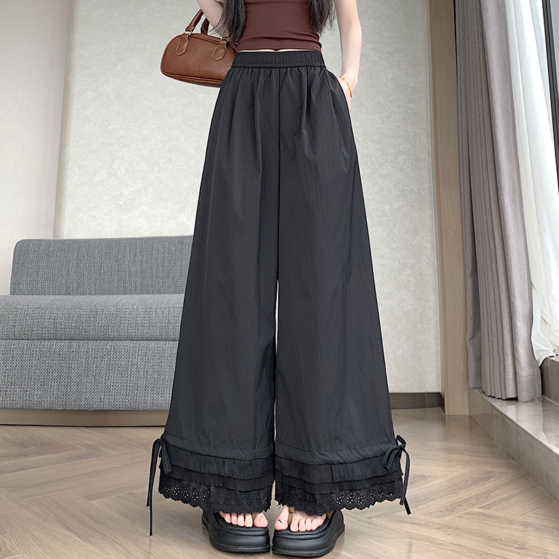 실사 레이스 레이스 패치워크 와이드 레깅스 바지 여름 섹션 둘 착용 스트레이트 팬츠 9 포인트 작은 키 루즈핏 캐주얼 바지