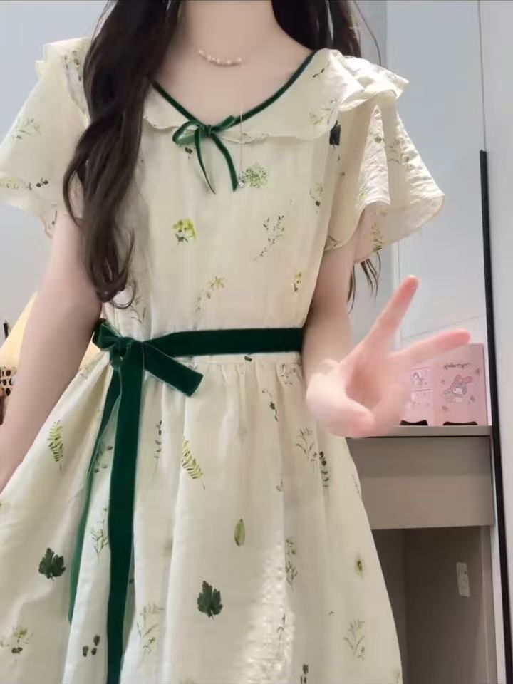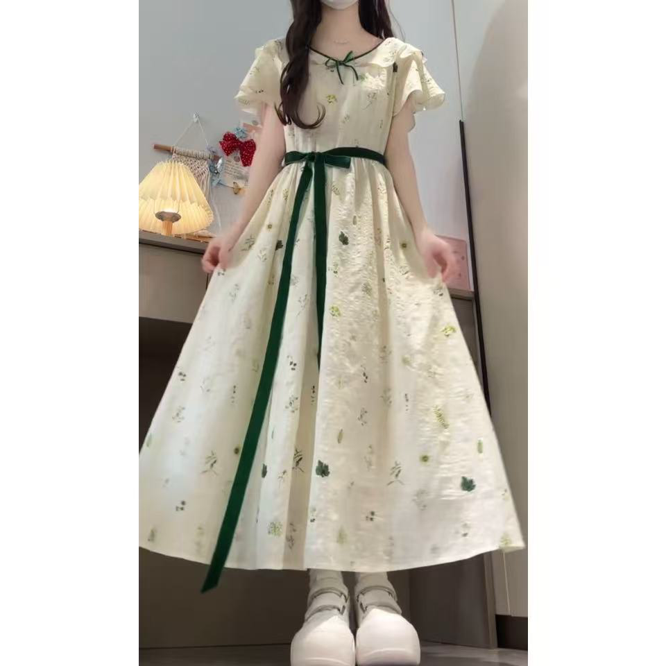 프랑스식 작은 날다 소매 녹색 꽃무늬 드레스 아이들 여름 2026 새로운 폭발 고유 한 아름다운 아름다운 롱 스커트