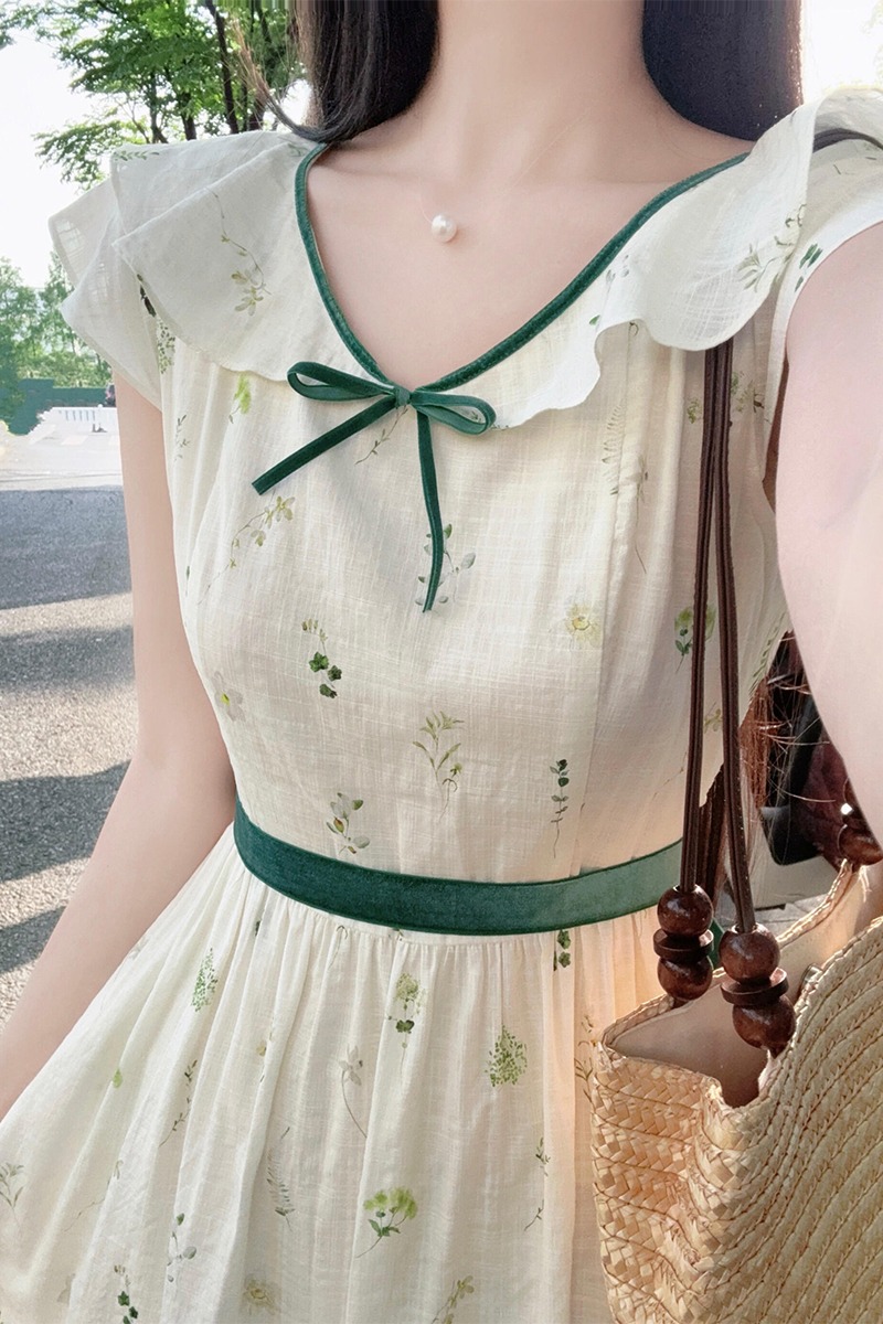 화이트 워터 여성 꽃 와 앨리스 광장 칼라 레이스 치마 여성 여름 휴가 바람 도루 센스 슬림해 보이는 큰 진자 드레스