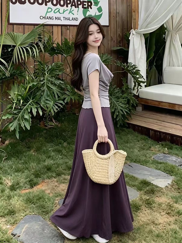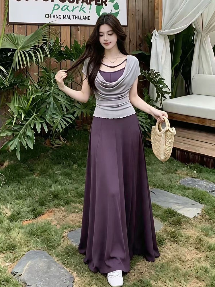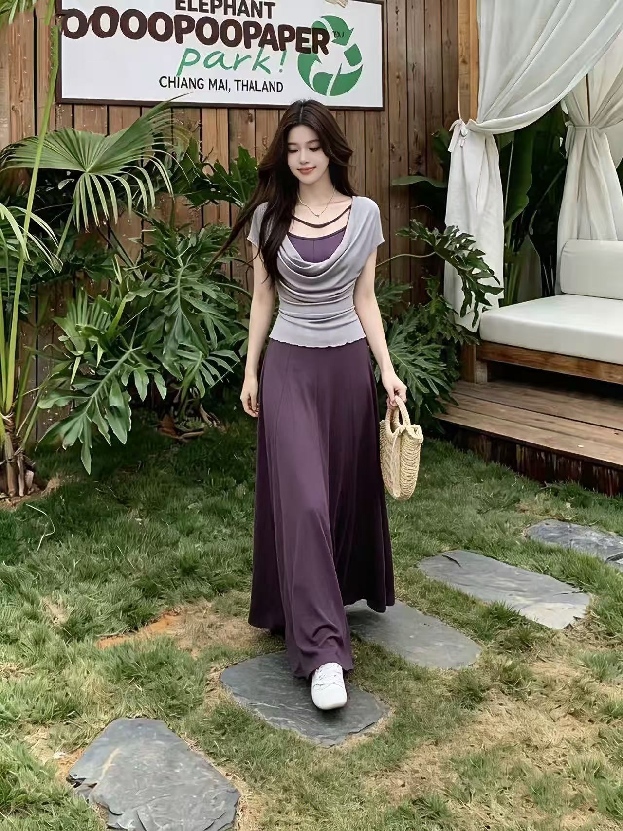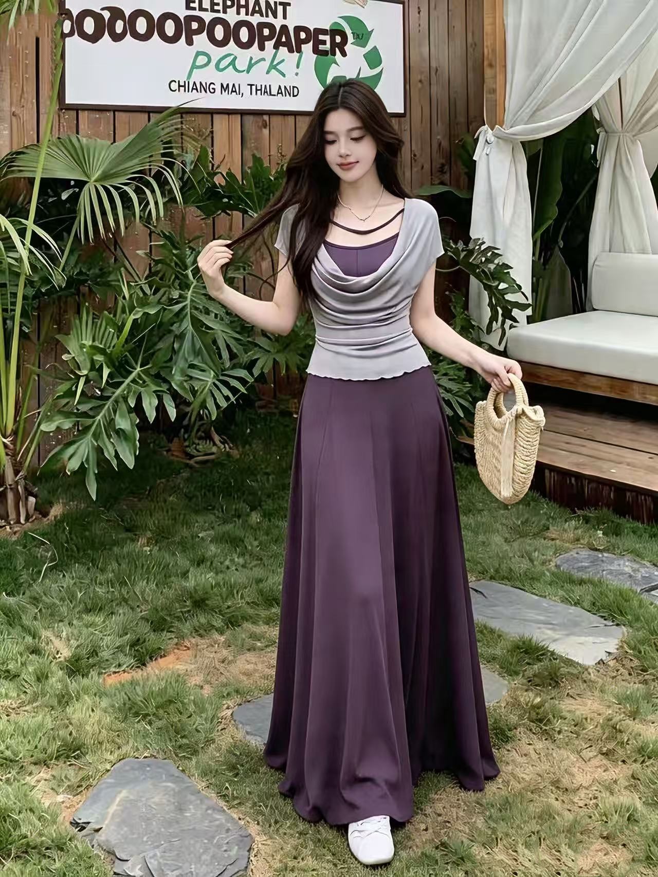 흔들다 칼라 불규칙 맨위 반신 스커트 두 조각 여성 세트 2026 여름 새로운 빅 사이즈 슬림해 보이는 도루 센스 세트 드레스