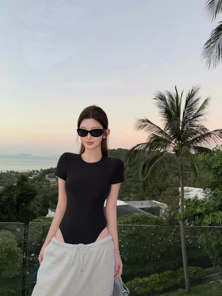 chicyou 카드 착용 Shan 개미 허리 sk ms 유럽과 미국 여성 스타 미니멀리즘 올인원 반팔 맨위