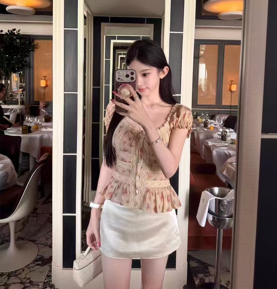3 점 달콤한 똑똑한 소녀 센스 라이 경기 서울 이중층 레이스 만 가져 가라. 쇼트 스타일 한 여성 분위기 센스 짧은 치마바지