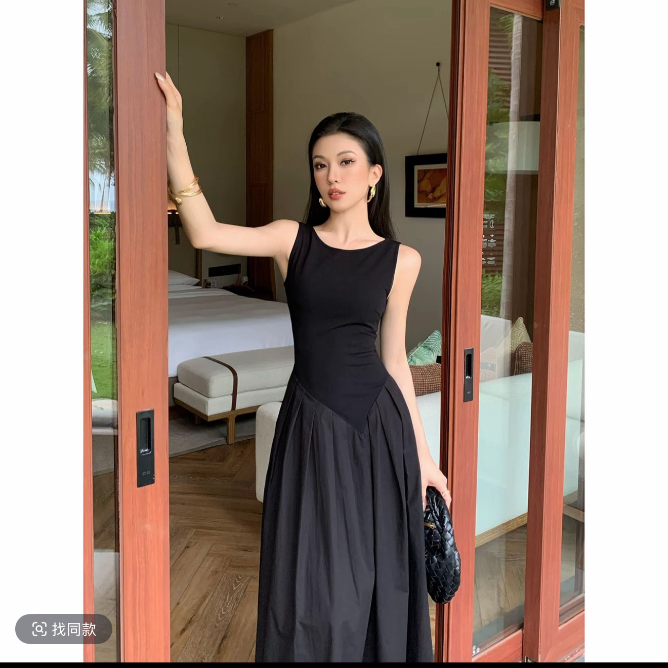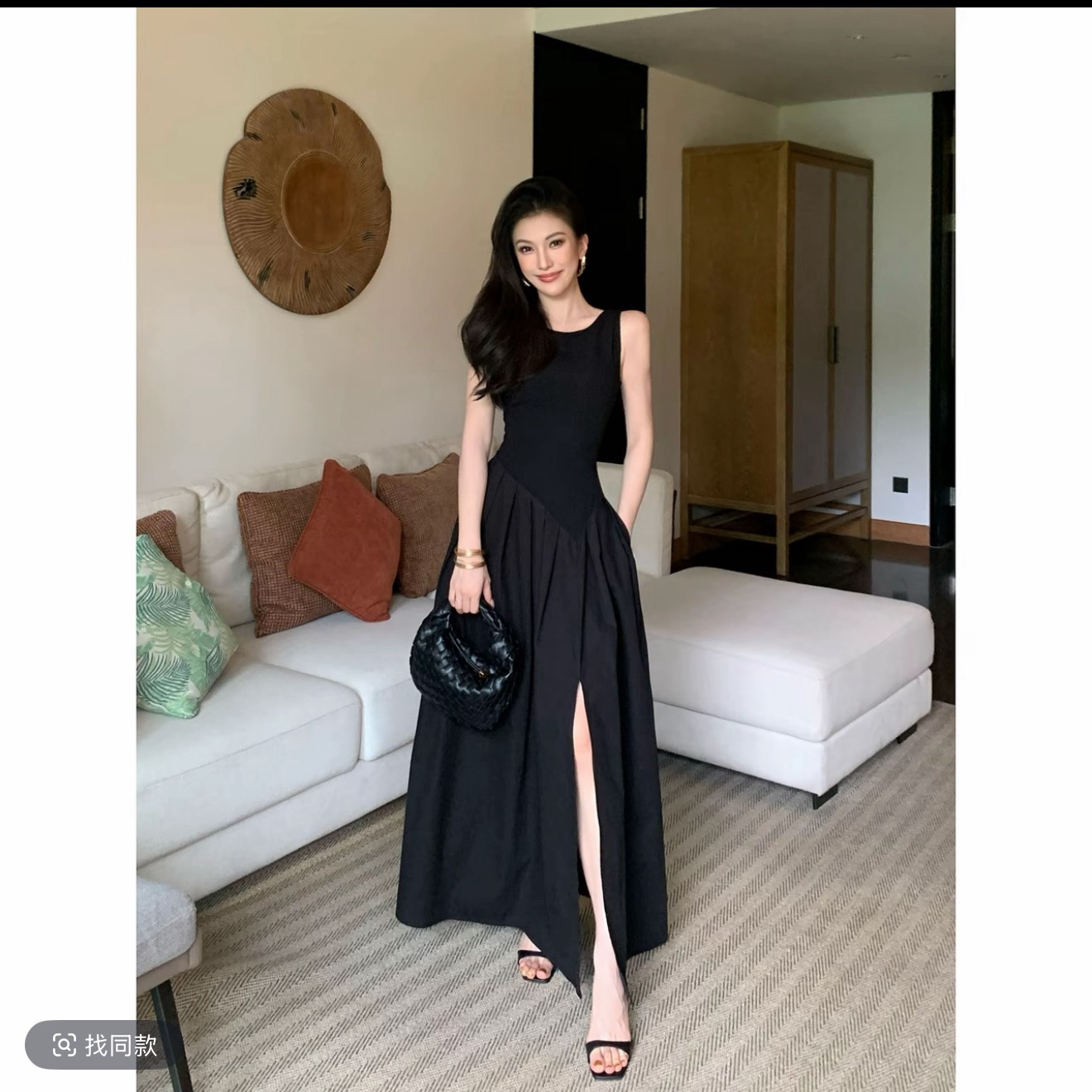 패션 여름 몸매 가꾸기 품격 그는 벤 바람 허리 수축 슬림해 보이는 검정색 드레스