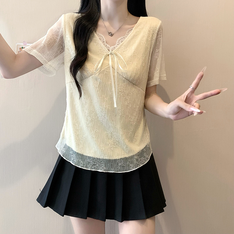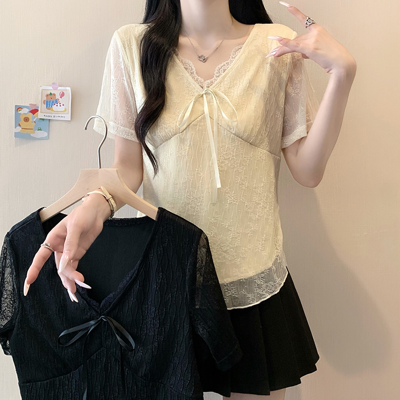실사 정가 2026 년 여름 새로운 레이스 레이스업 반팔 맨위 부드러운 바람 레이스 작은 셔츠