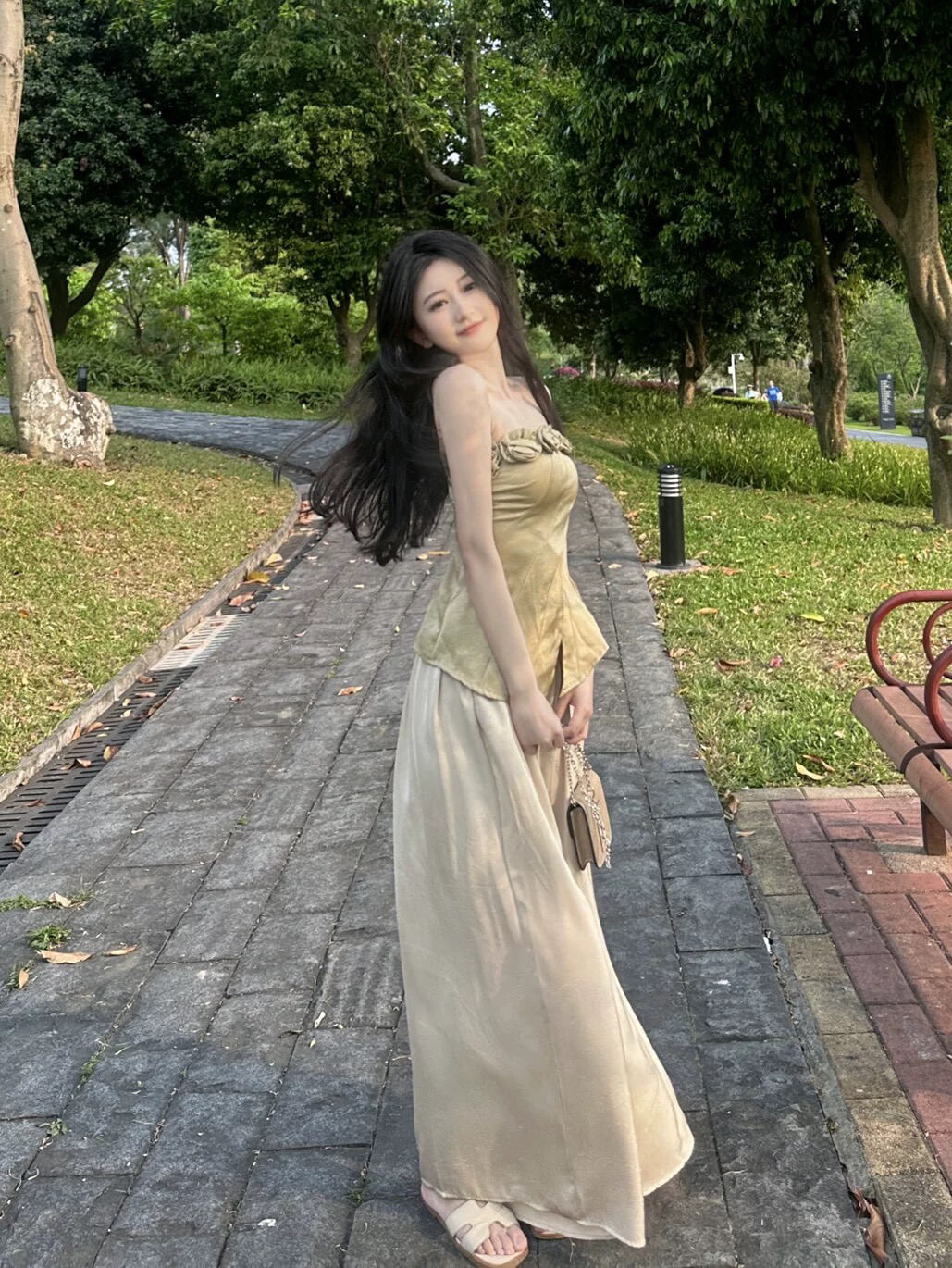 무쯔리 목자이 ~ 중 리 2026 새로운 중식 민소매 무늬 맨위 외출용 조끼 여성 여름 하이웨이스트 반신 스커트