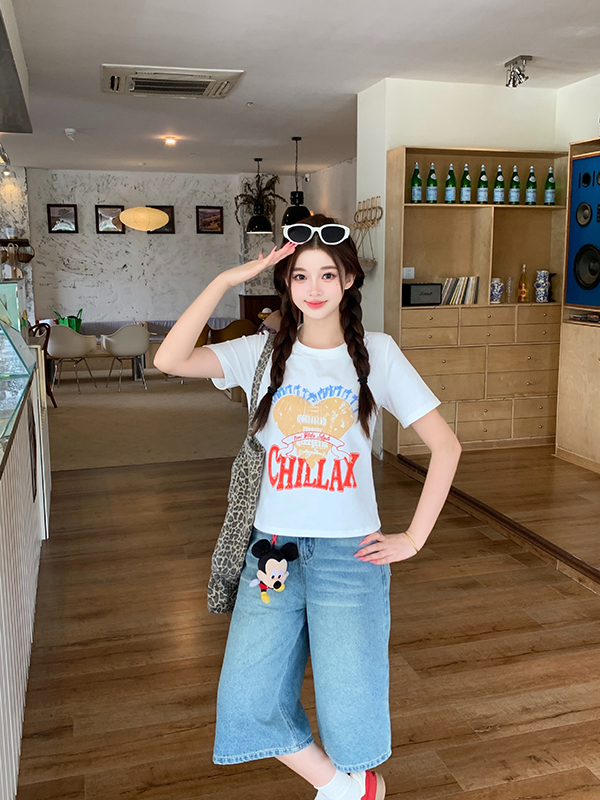 실사 정가 여름 새로운 빅 사이즈 여성 의류 만화 새끼 고양이 얇은 스타일 니트 반팔 슬림해 보이는 맨위