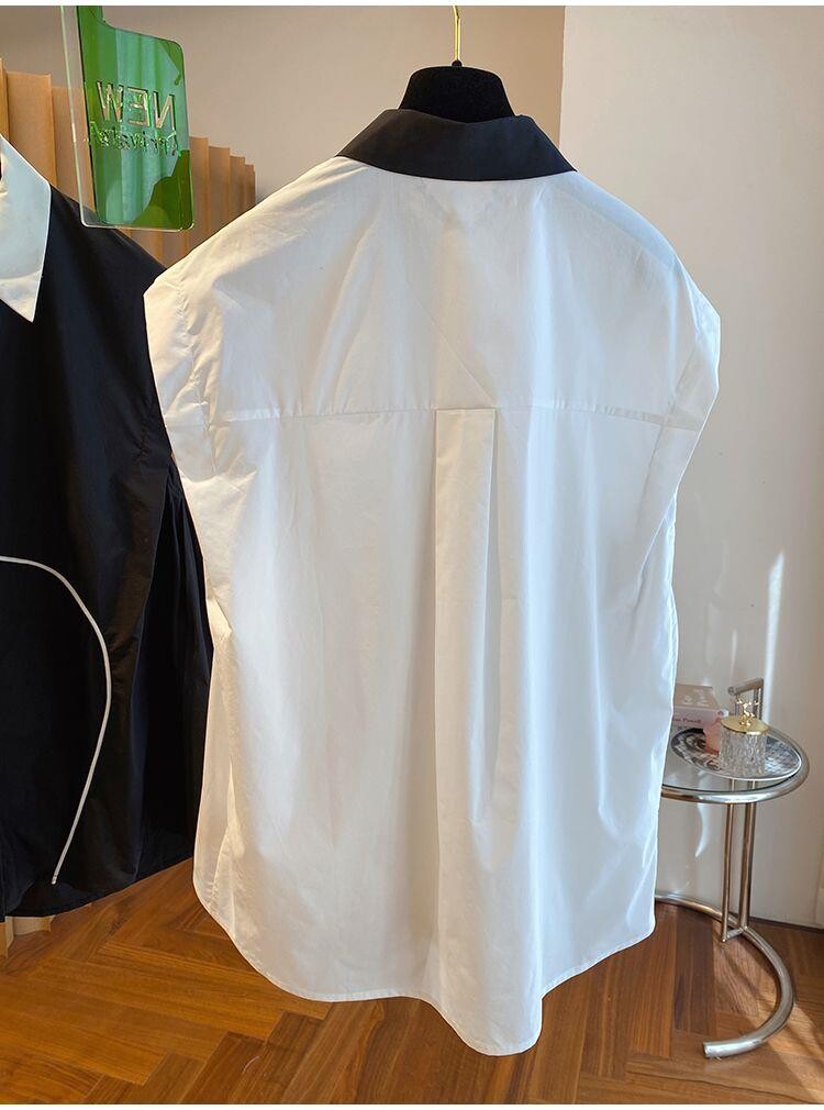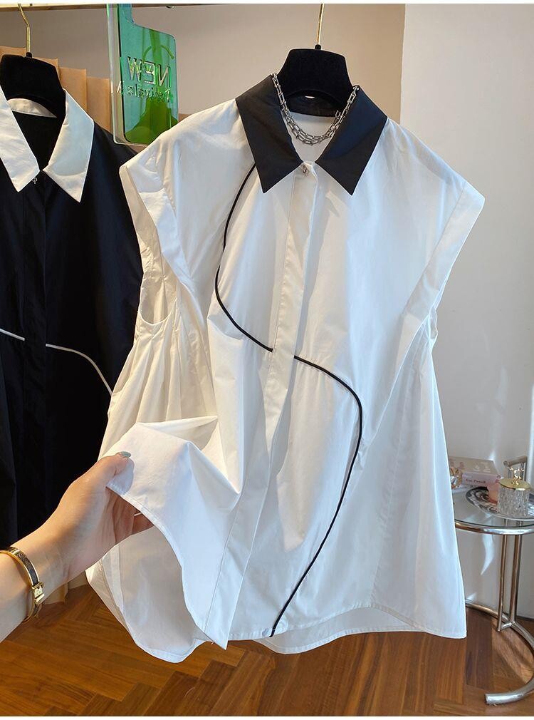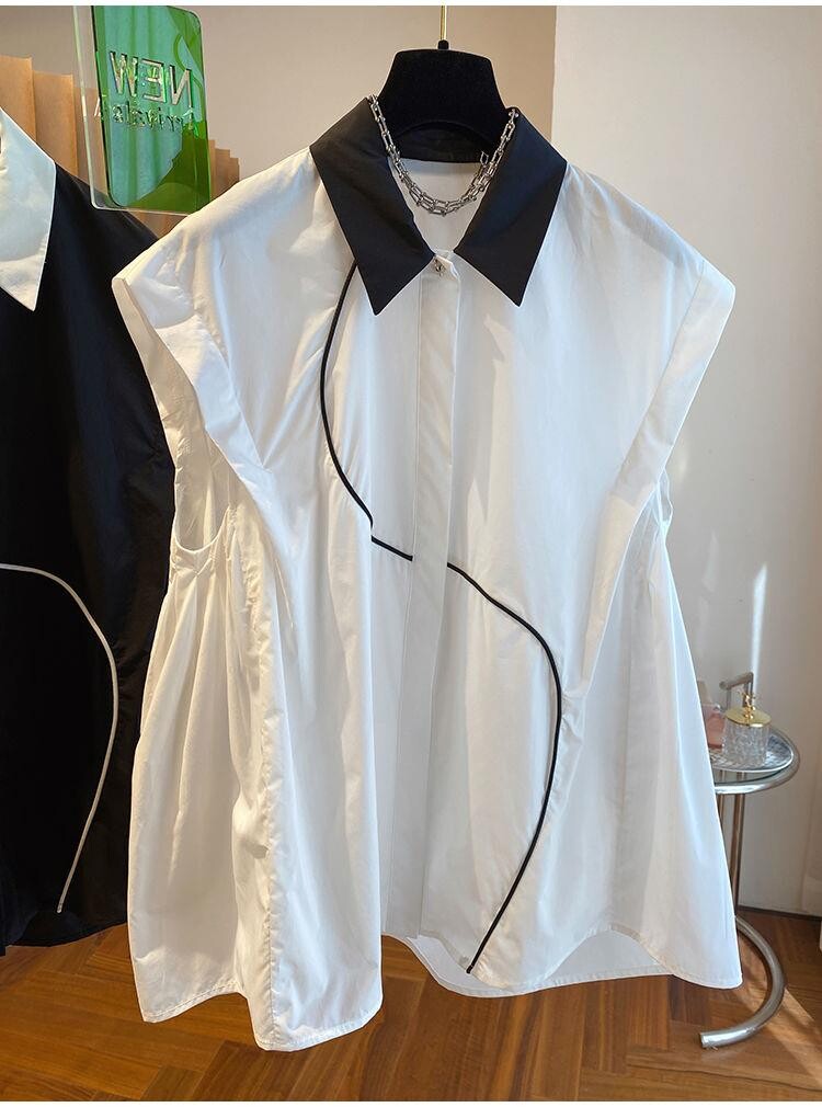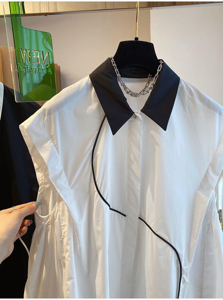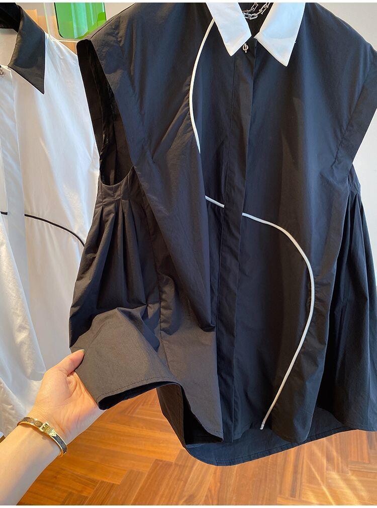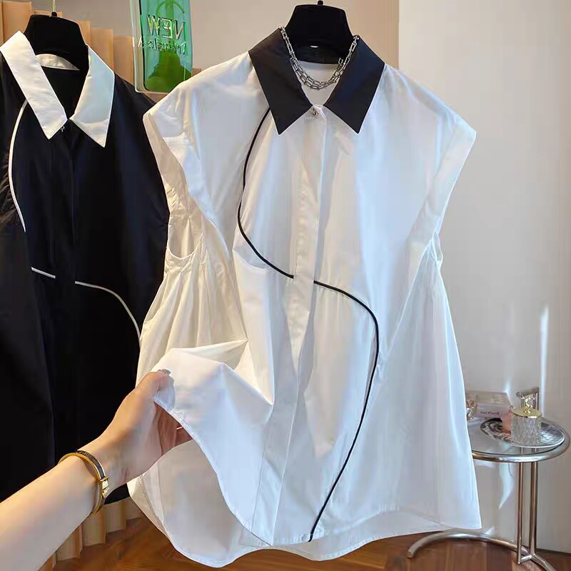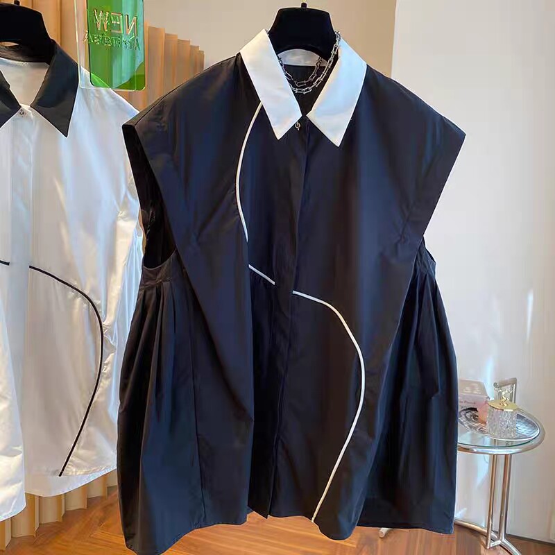 2026 작은 대중 디자인 센스 하이웨이스트 조끼 여성 외국 가스 배색 폴로 칼라 민소매 셔츠 순면 맨위 여름