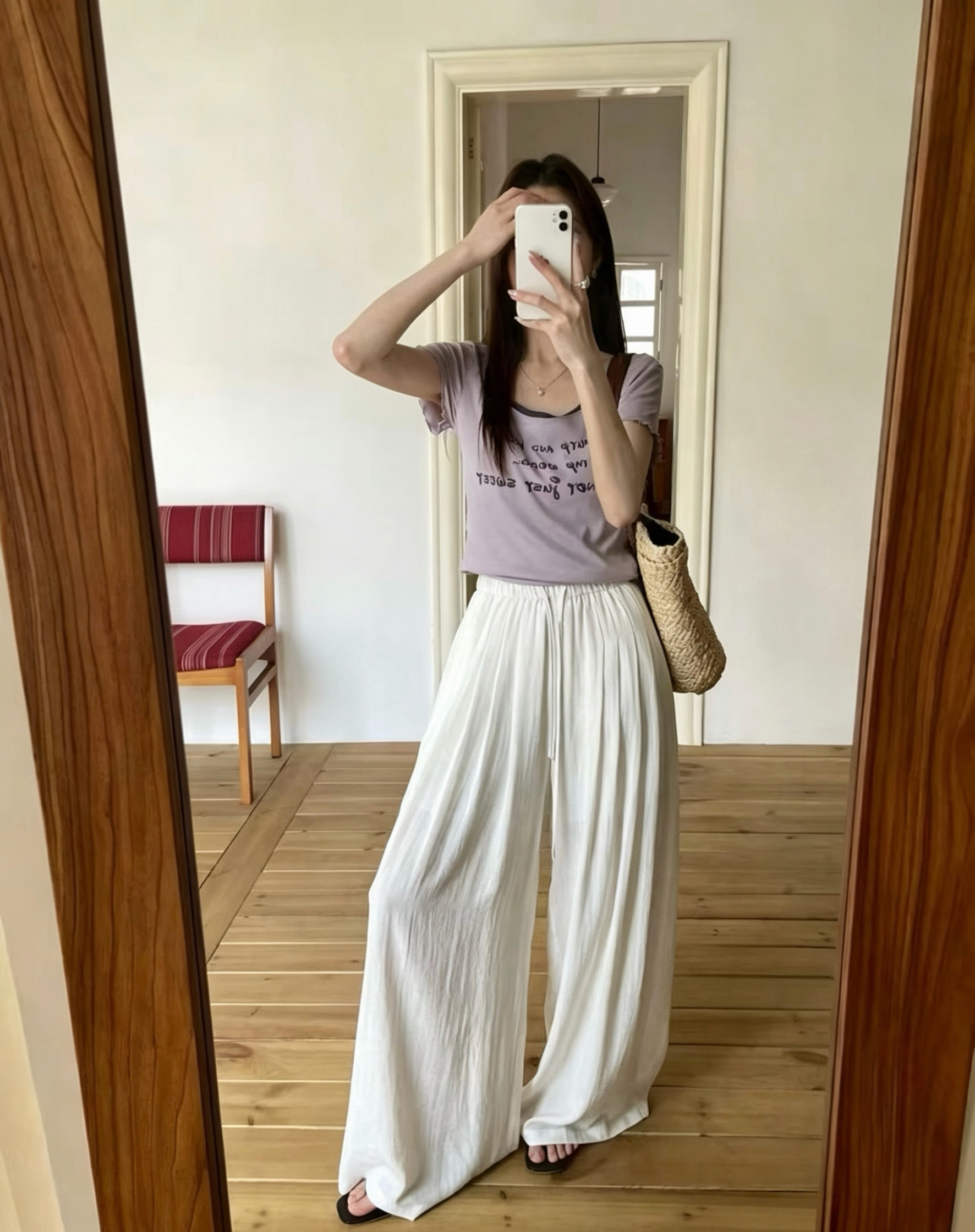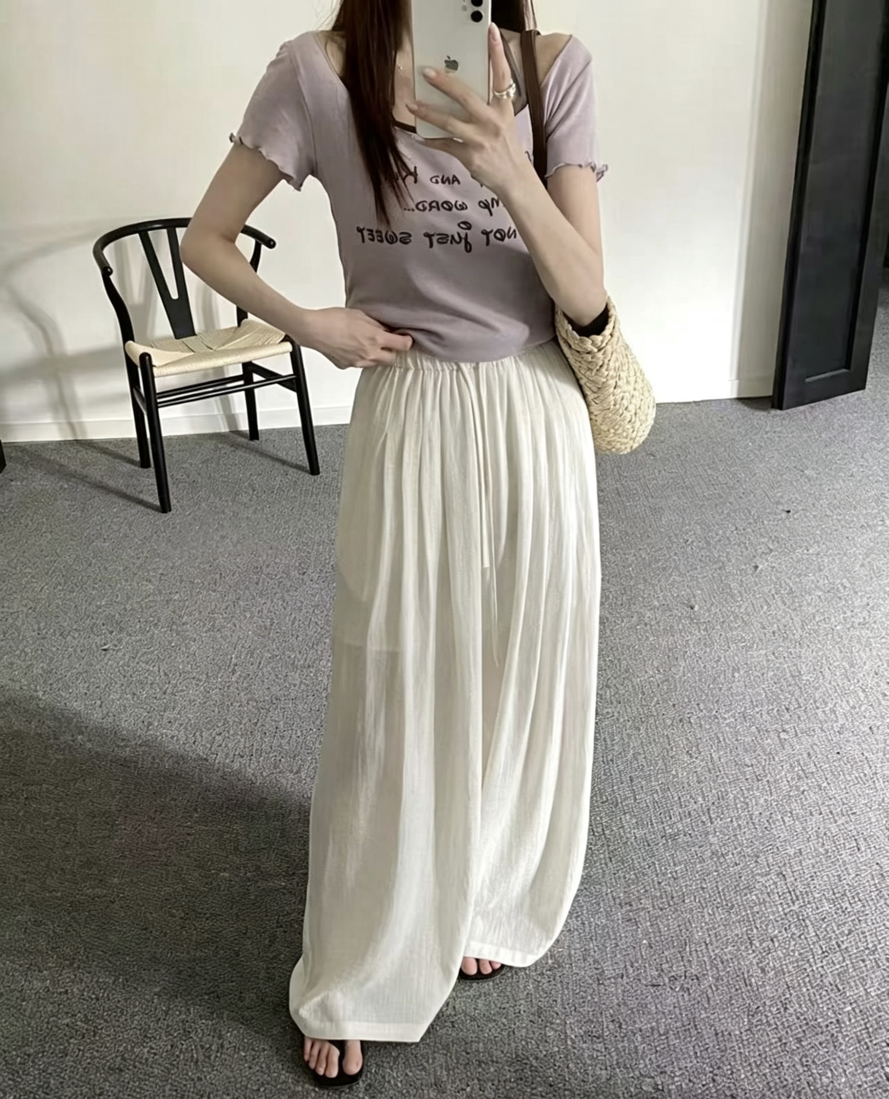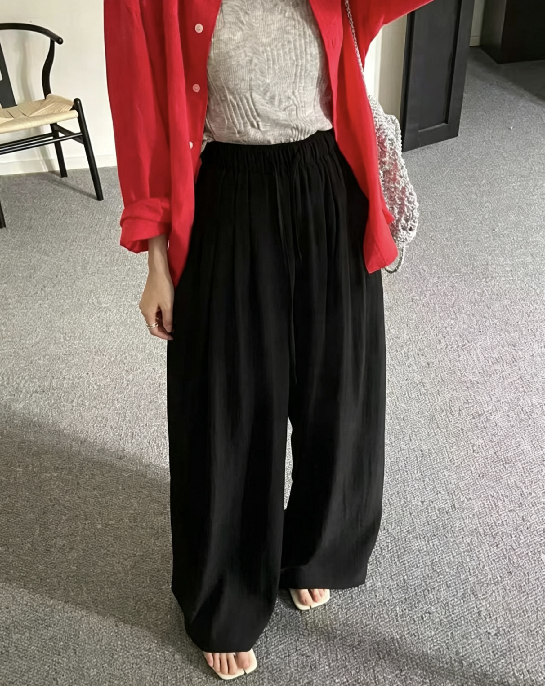 다리 종류 수정 유물 한 부서 느슨함 센스 캐주얼 바지 2026 새로운 여성 여름 얇은 스타일 넓은 다리 길이 바지