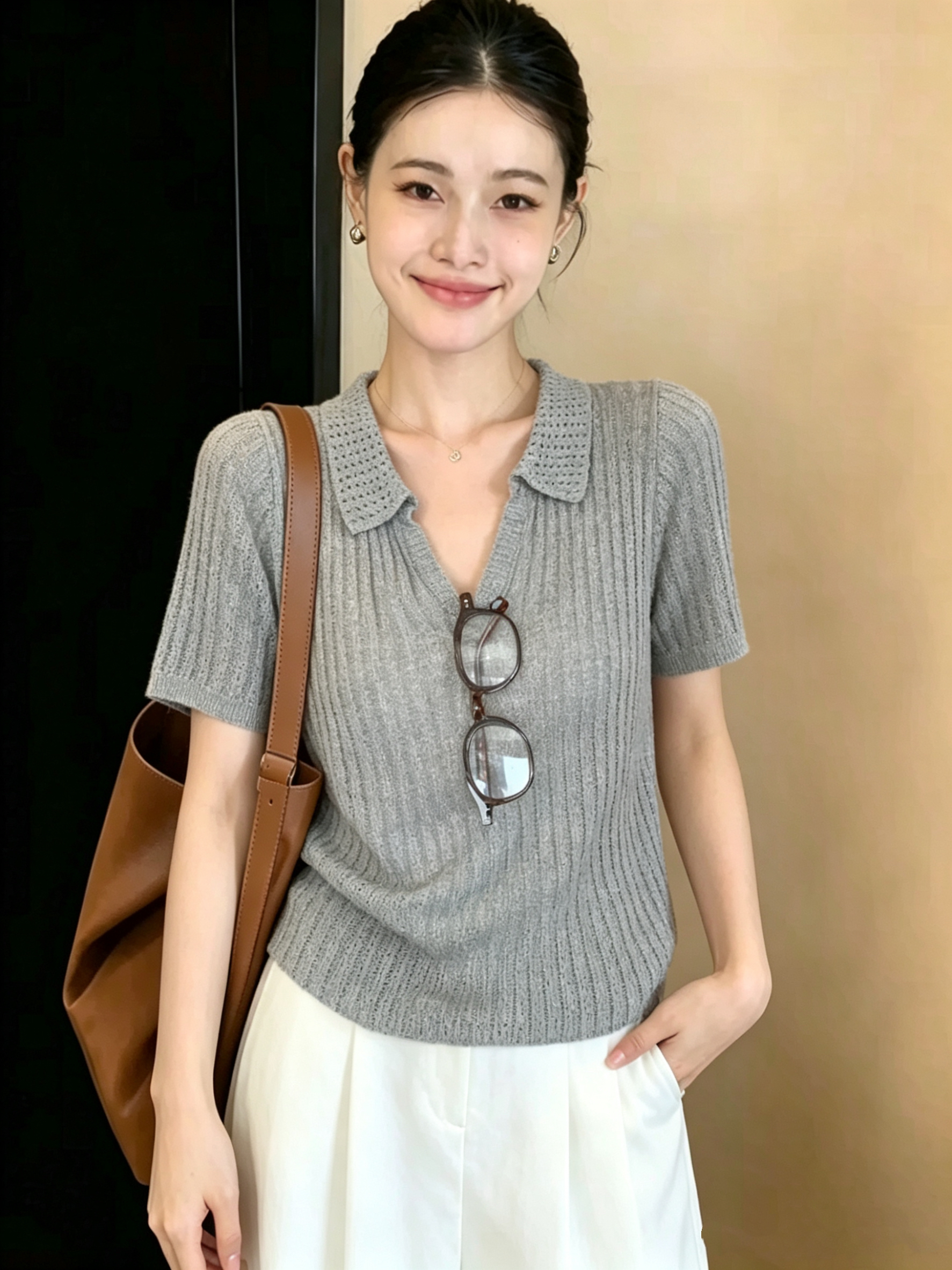 재고 있음 2026 봄 여름 새로운 빛 요리 한 바람 POLO 칼라 반팔 니트 스웨터