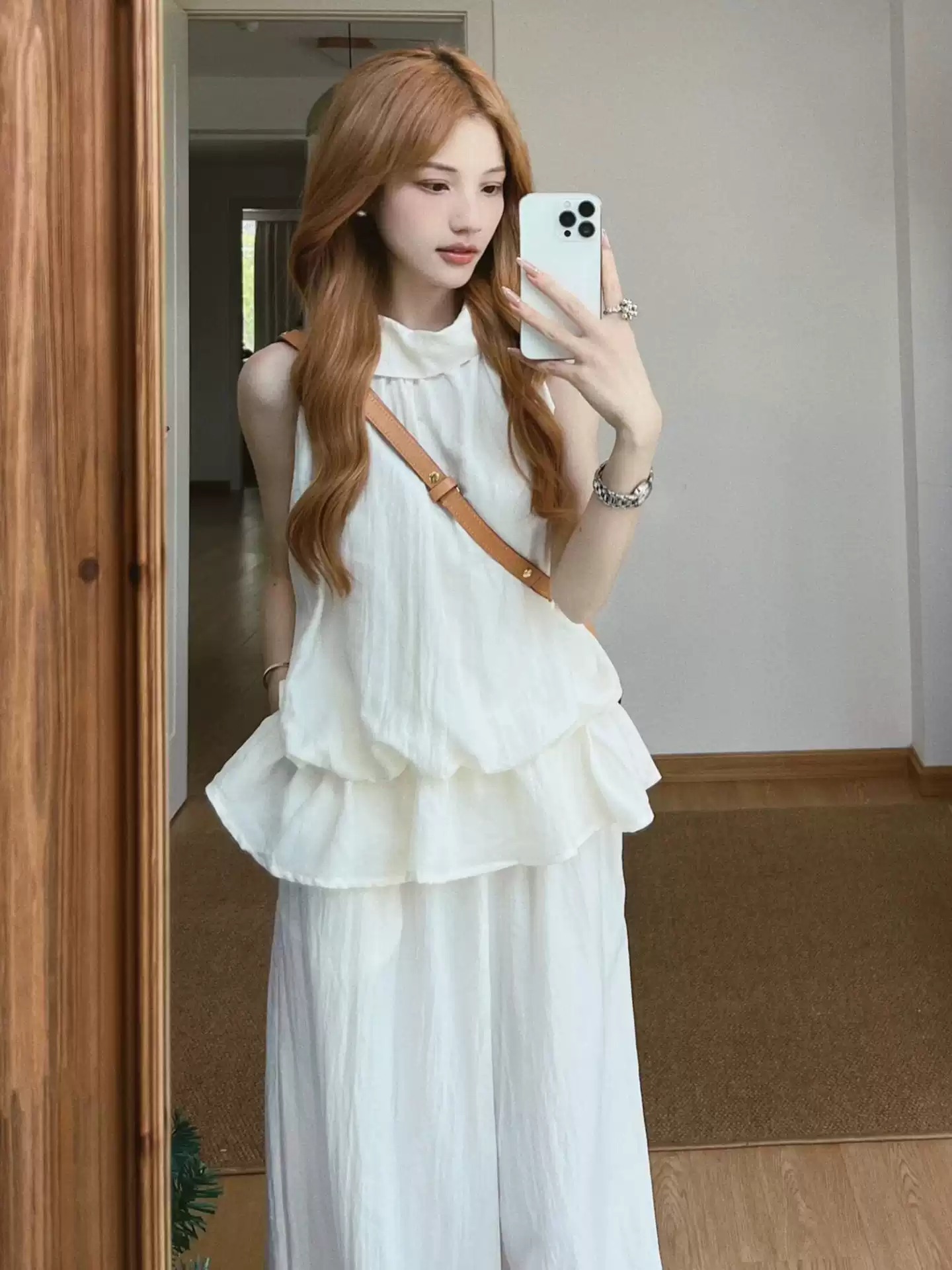 2026 새로운 느긋한 바람 민소매 허리 수축 맨위 와이드 레그 팬츠 두 조각 여성 세트 여름 캐주얼 세트 외국 가스 연령 감소