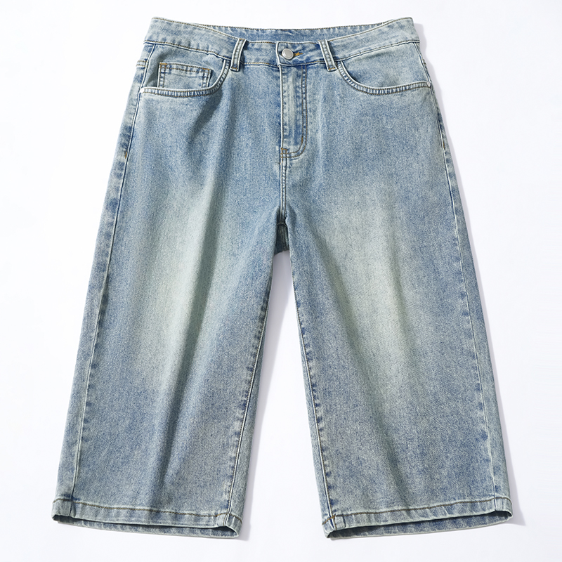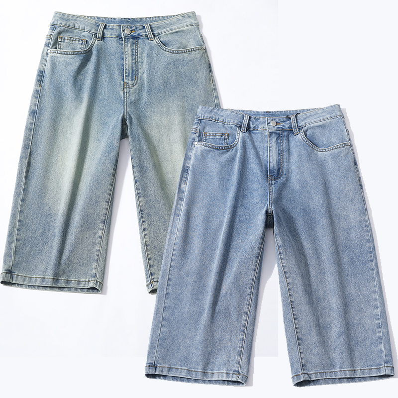 남성 레트로 데님 반바지 스트레이트 루즈핏 트렌드 캐주얼 오부 바지 여름 얇은 스타일 다용도 바지 인터넷 에디션
