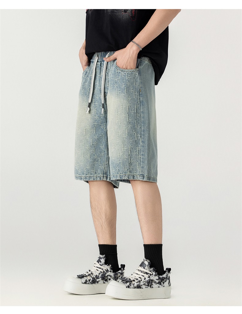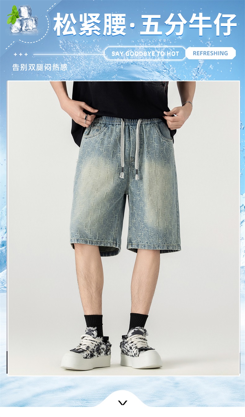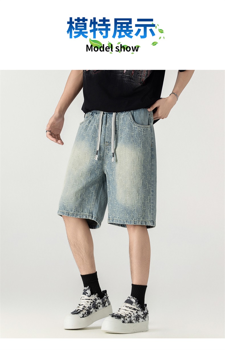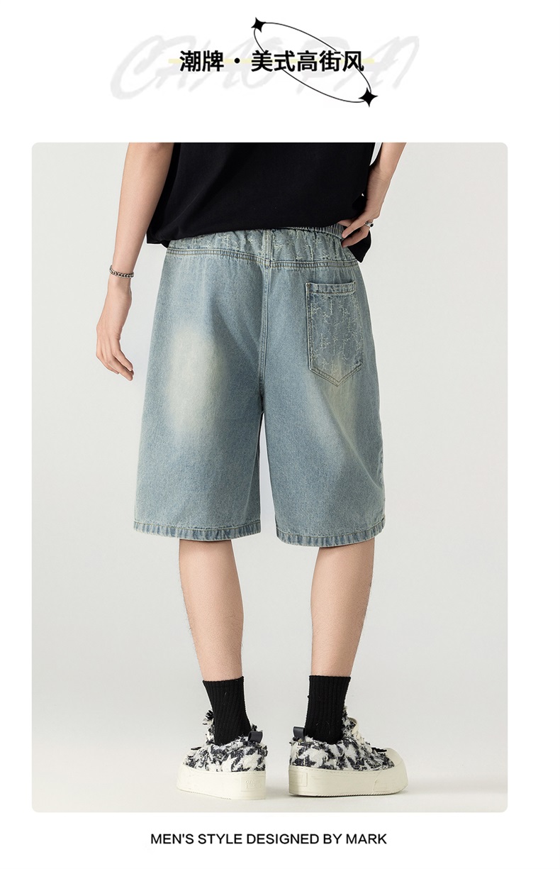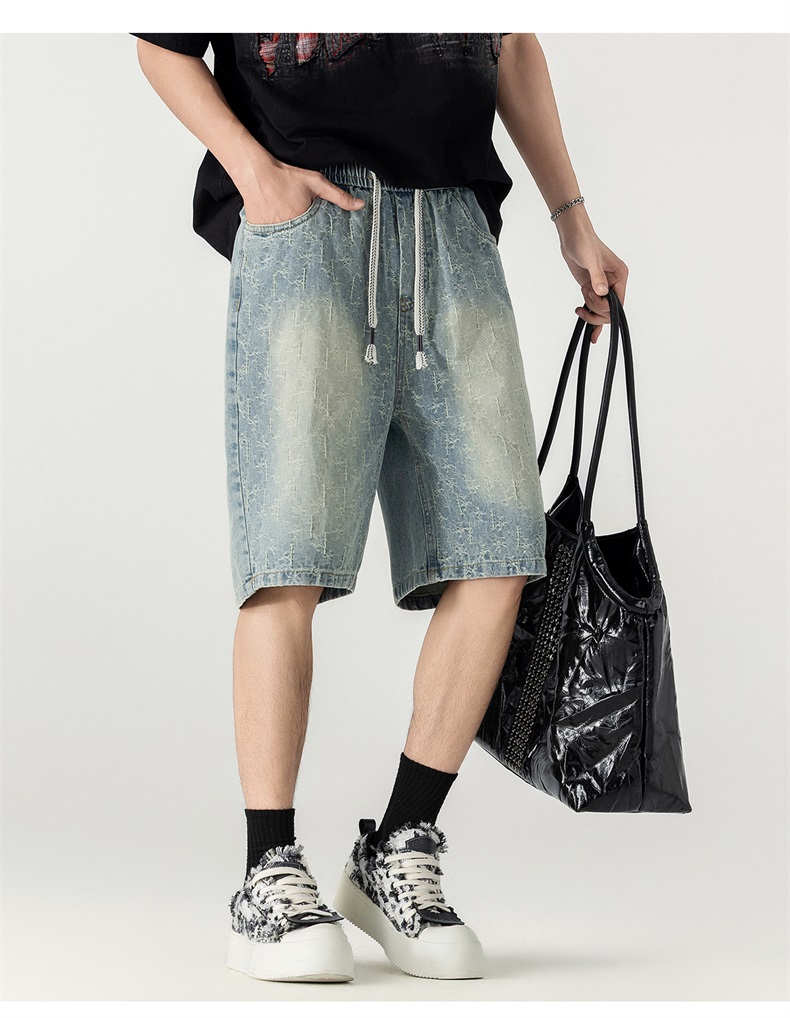 남성 레트로 데님 반바지 스트레이트 루즈핏 트렌드 캐주얼 오부 바지 여름 얇은 스타일 다용도 바지 인터넷 에디션