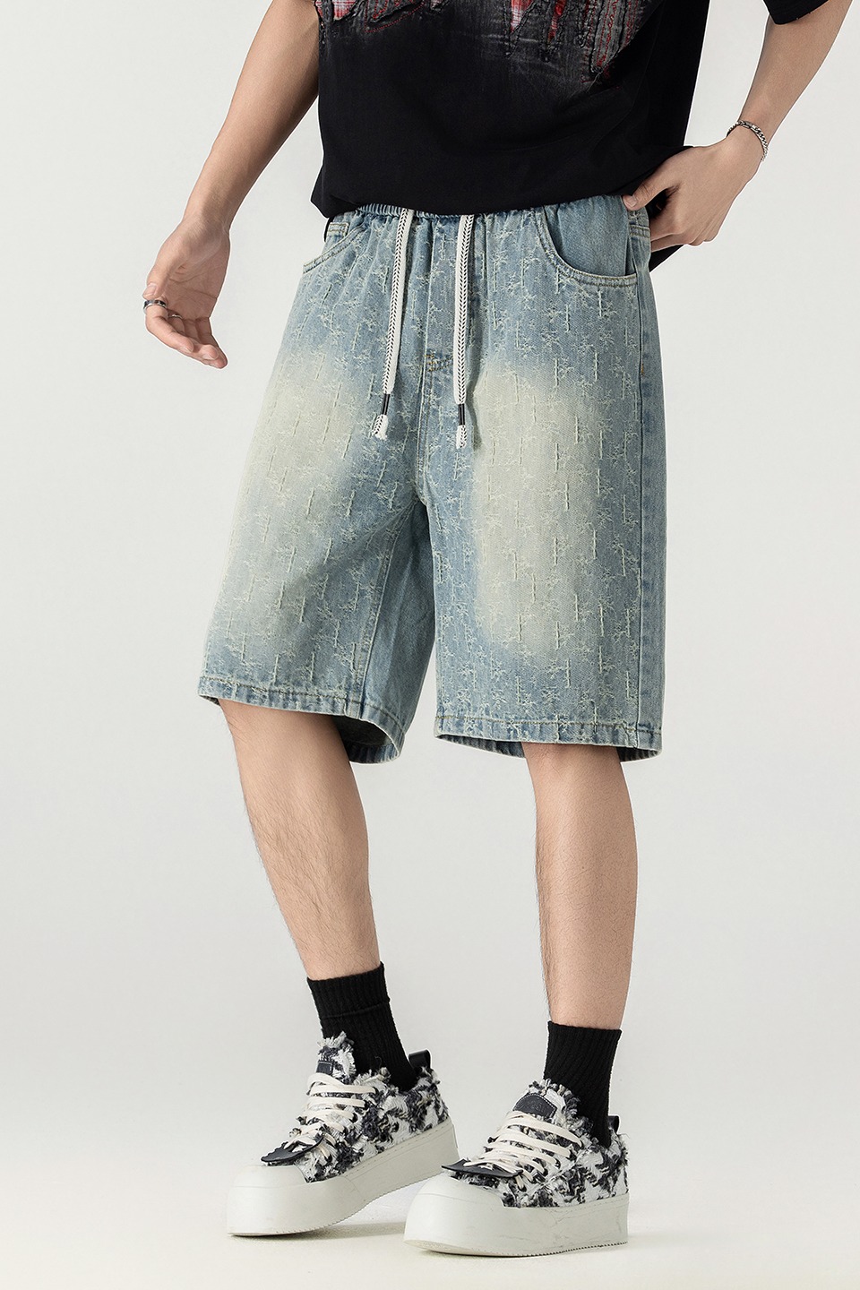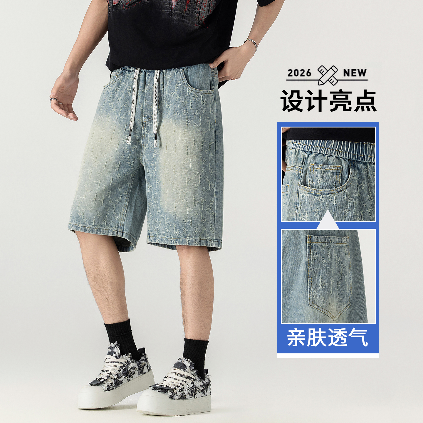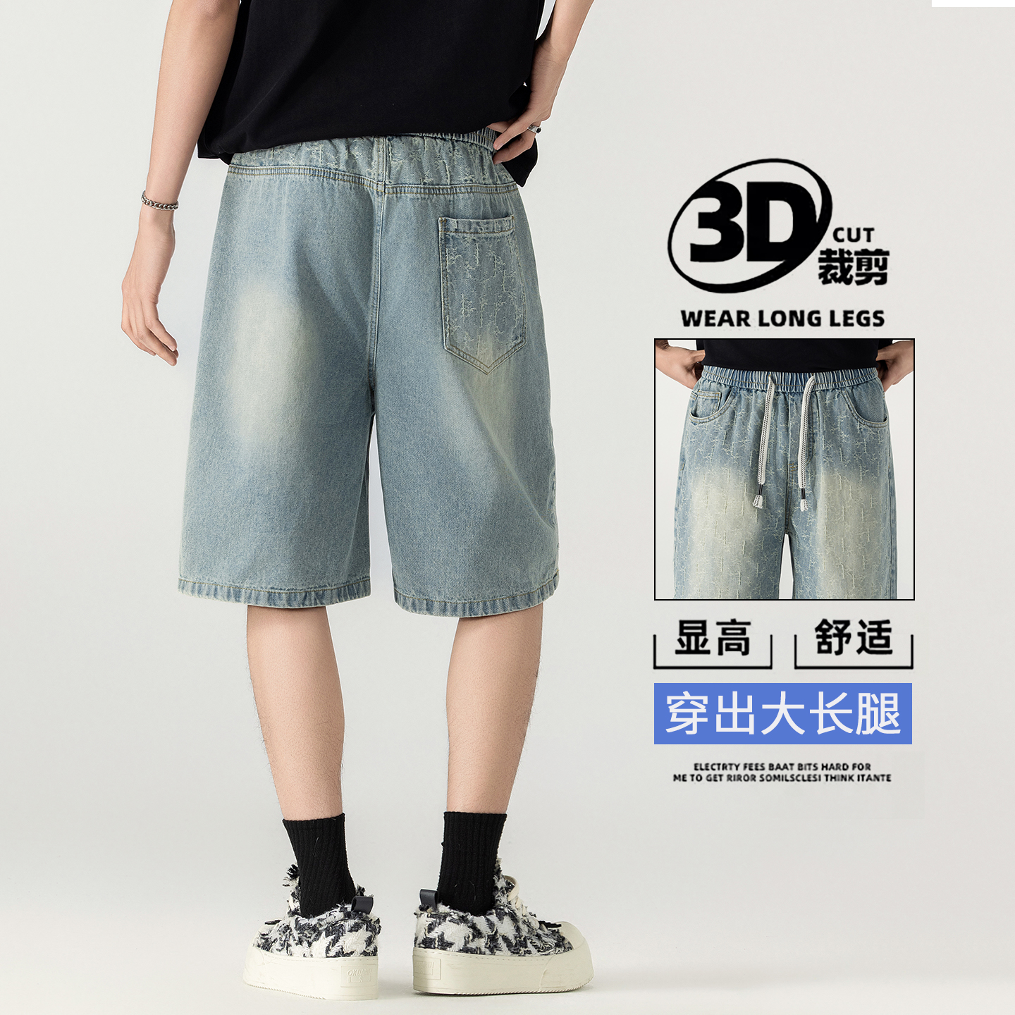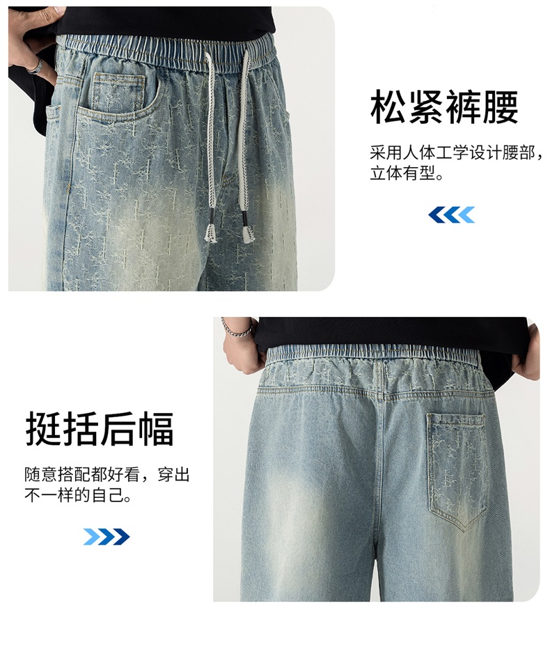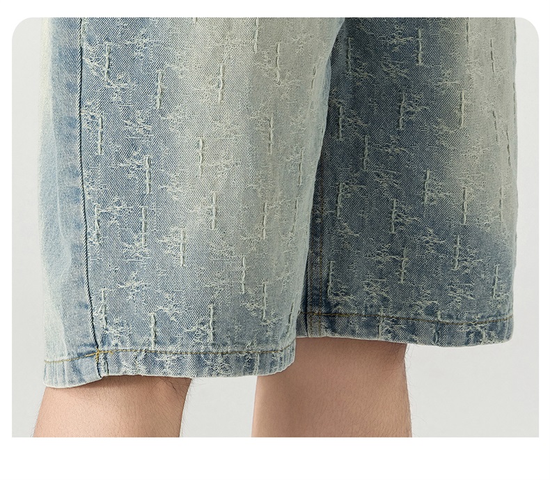 남성 레트로 데님 반바지 스트레이트 루즈핏 트렌드 캐주얼 오부 바지 여름 얇은 스타일 다용도 바지 인터넷 에디션