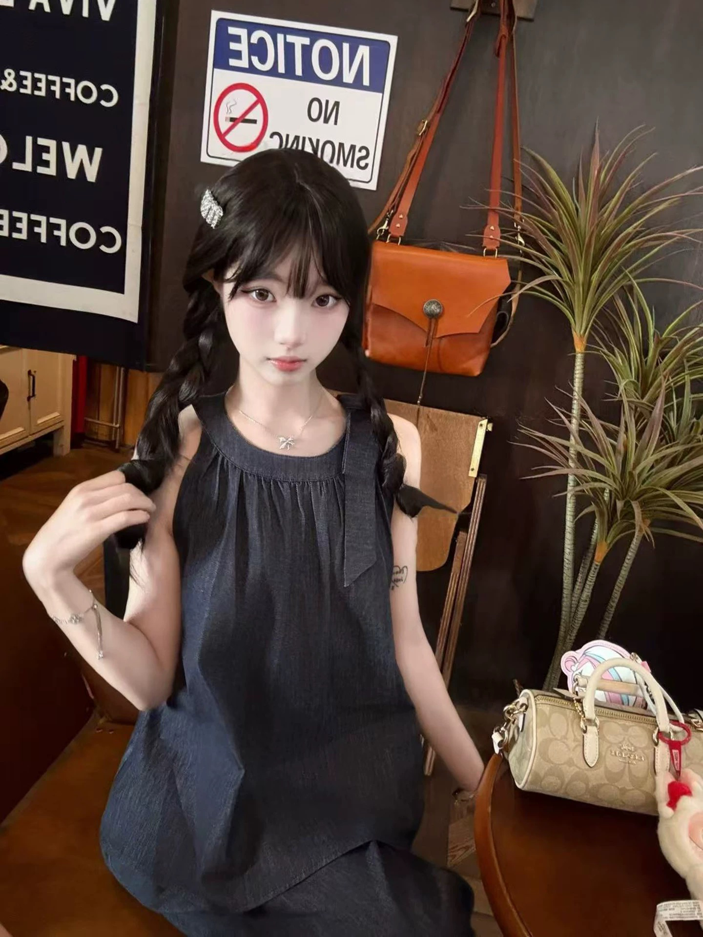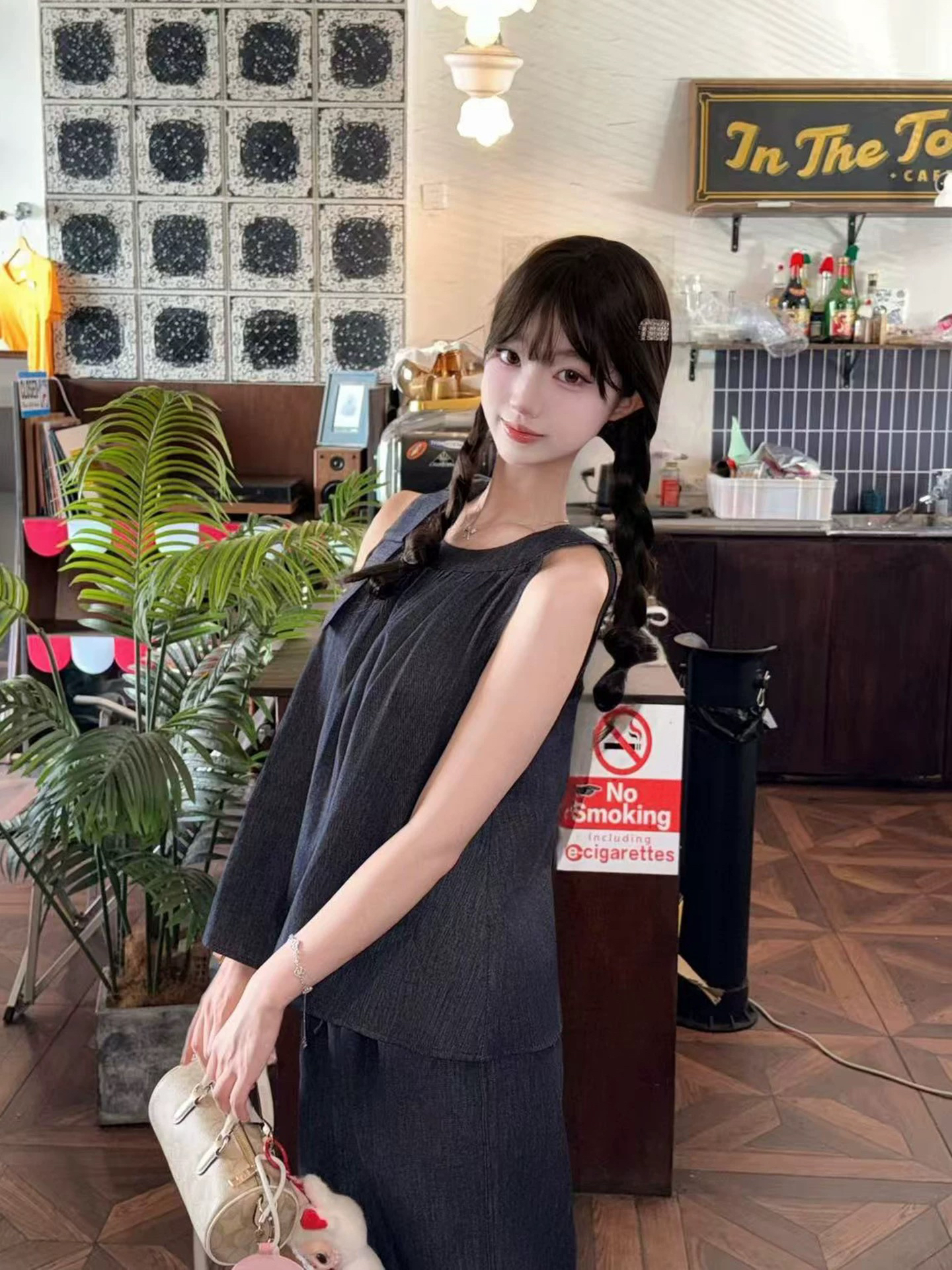 미니멀리즘 품격 연령 감소 작은 대중 디자인 센스 관대 한 점잖은 2026 봄 새로운 파란색 민소매 데님 조끼 스커트