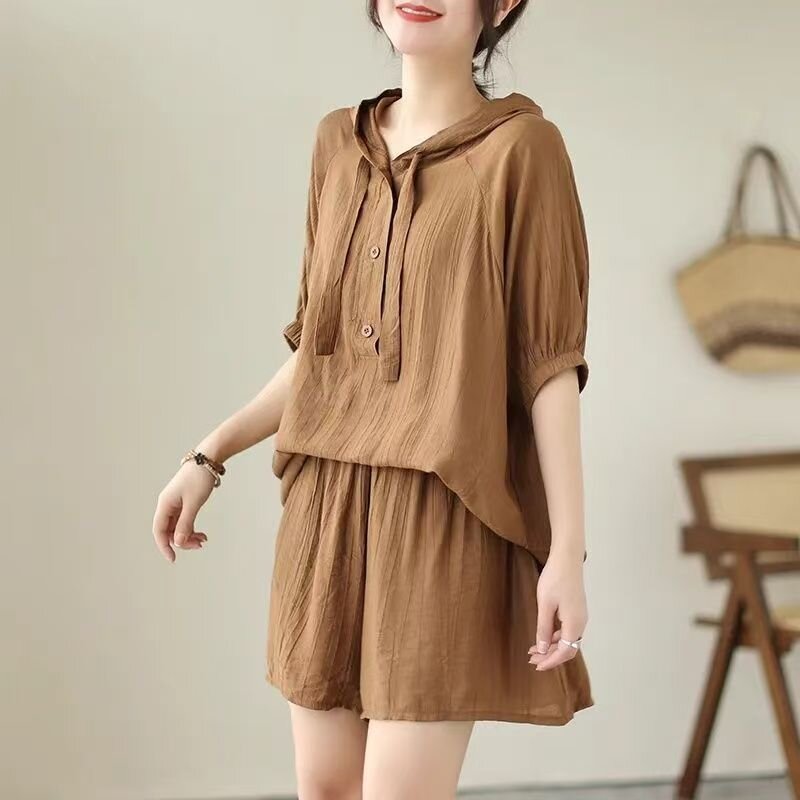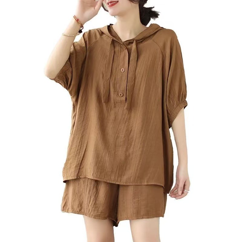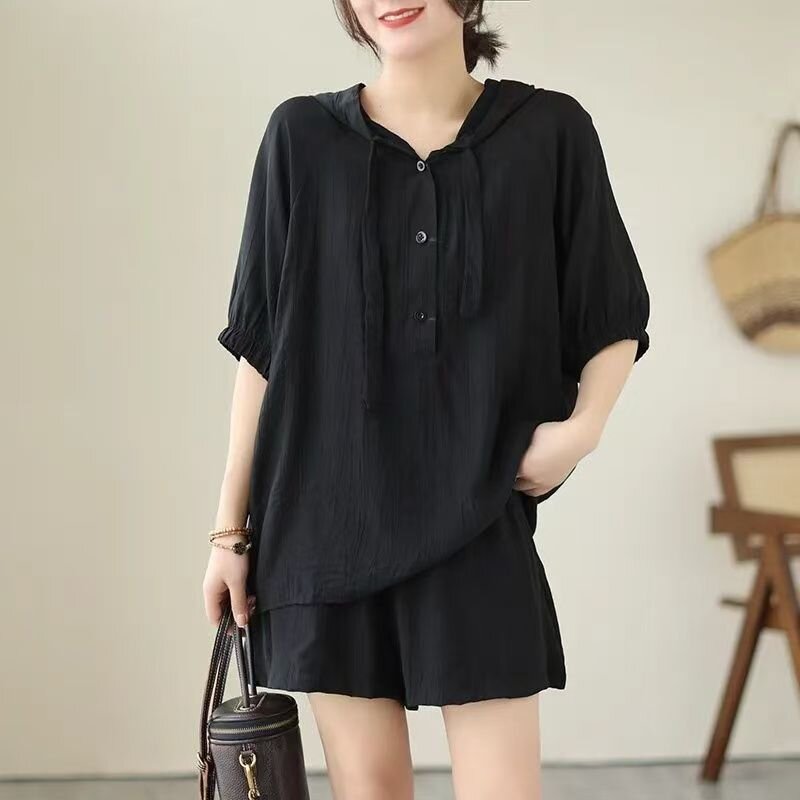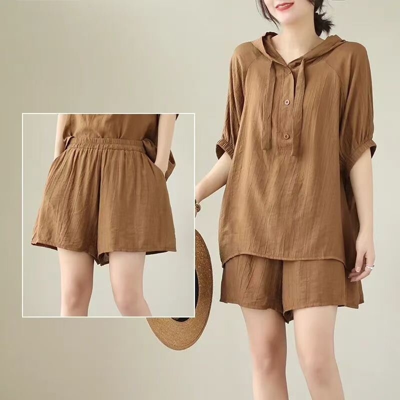 빅 사이즈 패션 세트 여성 여름 루즈핏 후드 반팔 맨위 표지 고기 슬림해 보이는 반바지 지방 mm 두 조각 여성 세트 트렌디