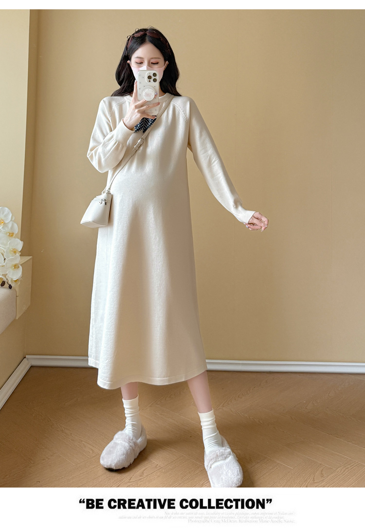 실사 봄 드레스 새로운 인터넷 유명인 출산 착용 니트 스트라이프 임산부 롱 코트 드레스 한국 스타일 루즈핏 디스플레이 농땡이 부리다