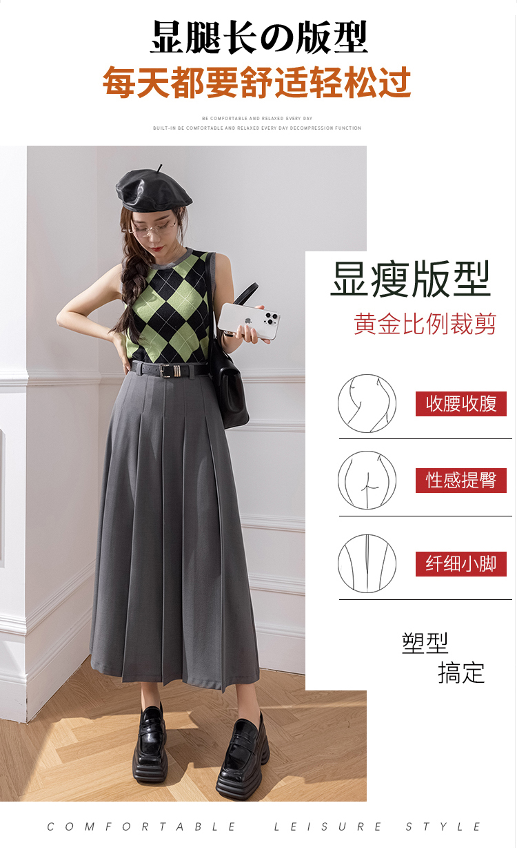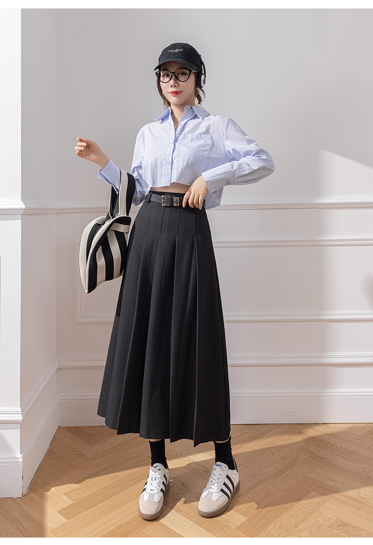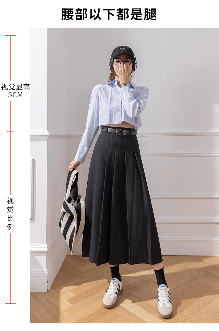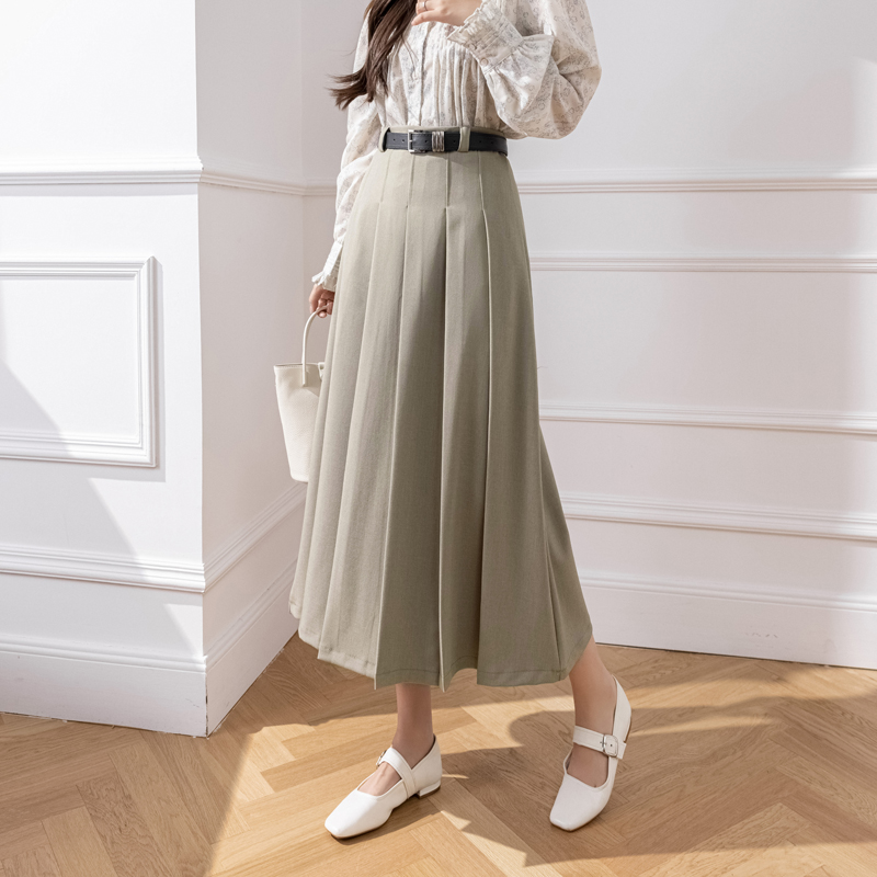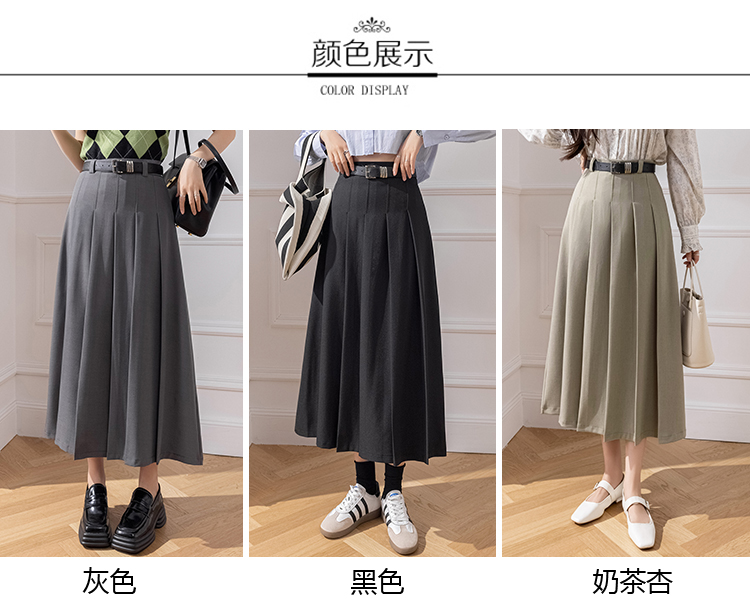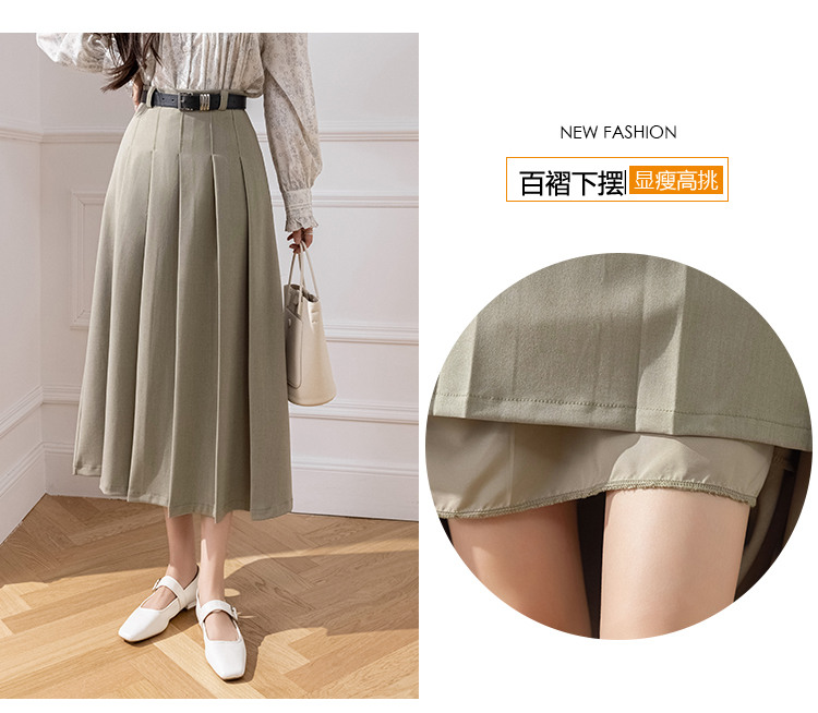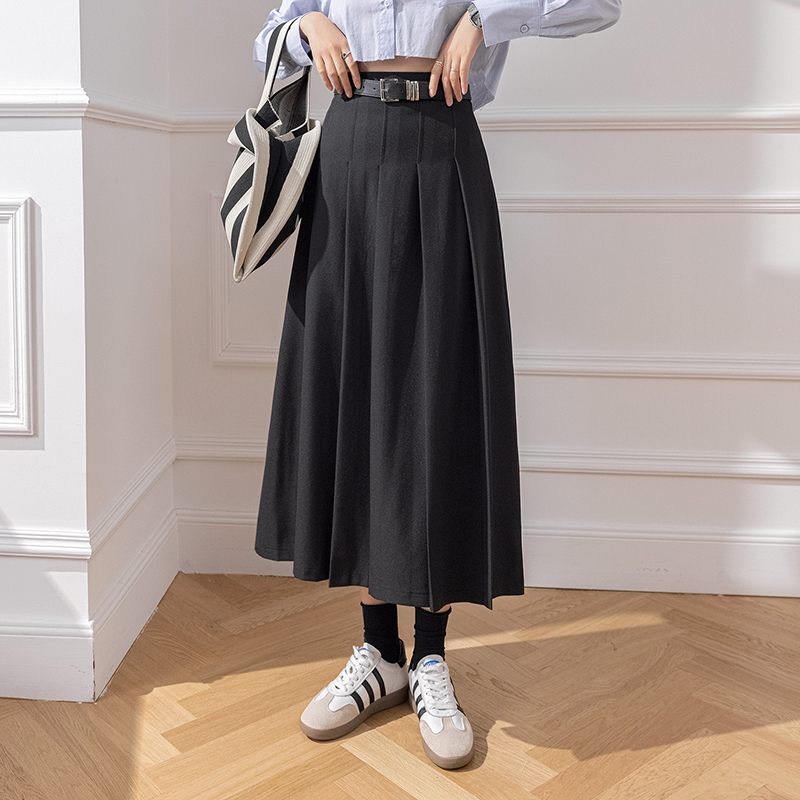 큰 진자 주름 표지 넓적 다리 캐주얼 정장 롱 스커트 2026 봄 여름 새로운 하이웨이스트 중간 길이 플리츠 반신 스커트