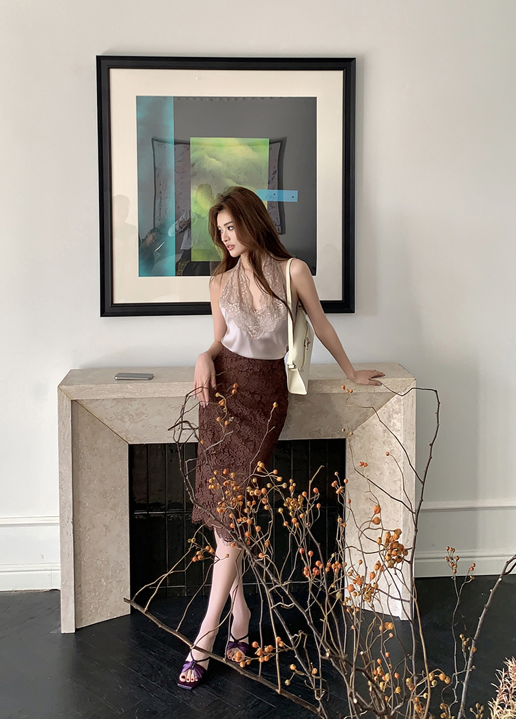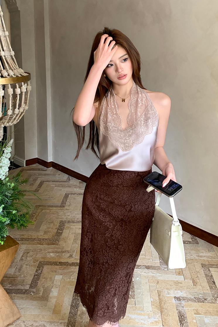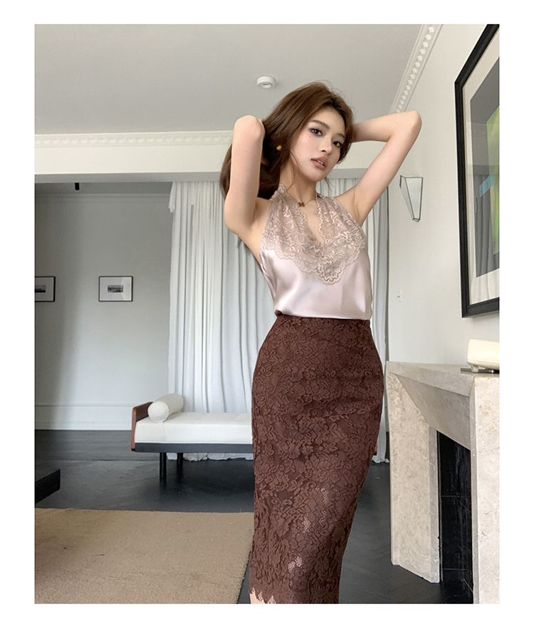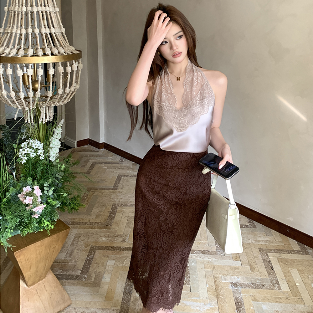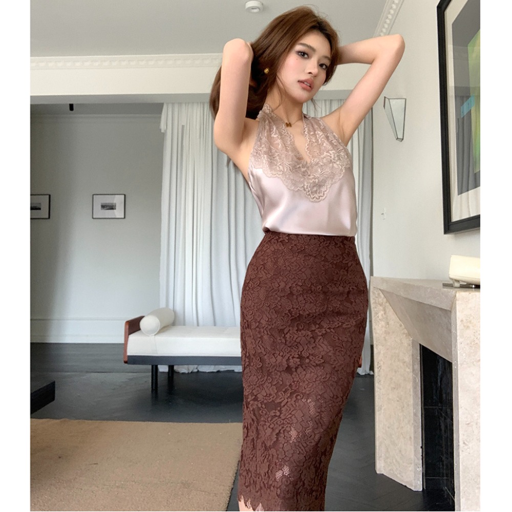 실사 2026 봄 여름 새로운 디자인 몸매 가꾸기 슬림해 보이는 하이웨이스트 타이트 스커트 여성 레이스 치마 중간 길이 스커트 반신 치마