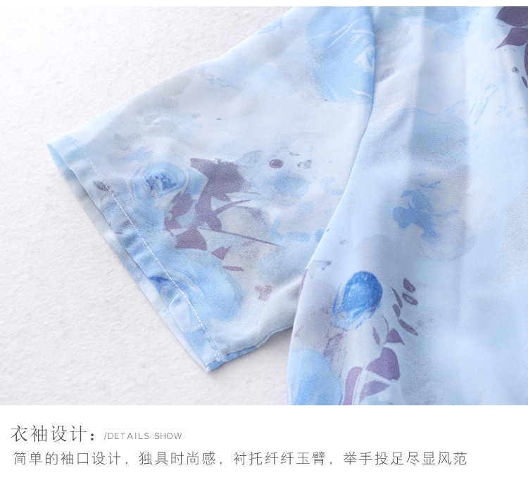 q 여자 집 이것 만 팥 새로운 중식 허리 수축 점프 슈트 치마 세트 날다 소매 아름다운 국풍 착용 가져 가라. 여름 밖으로 조각