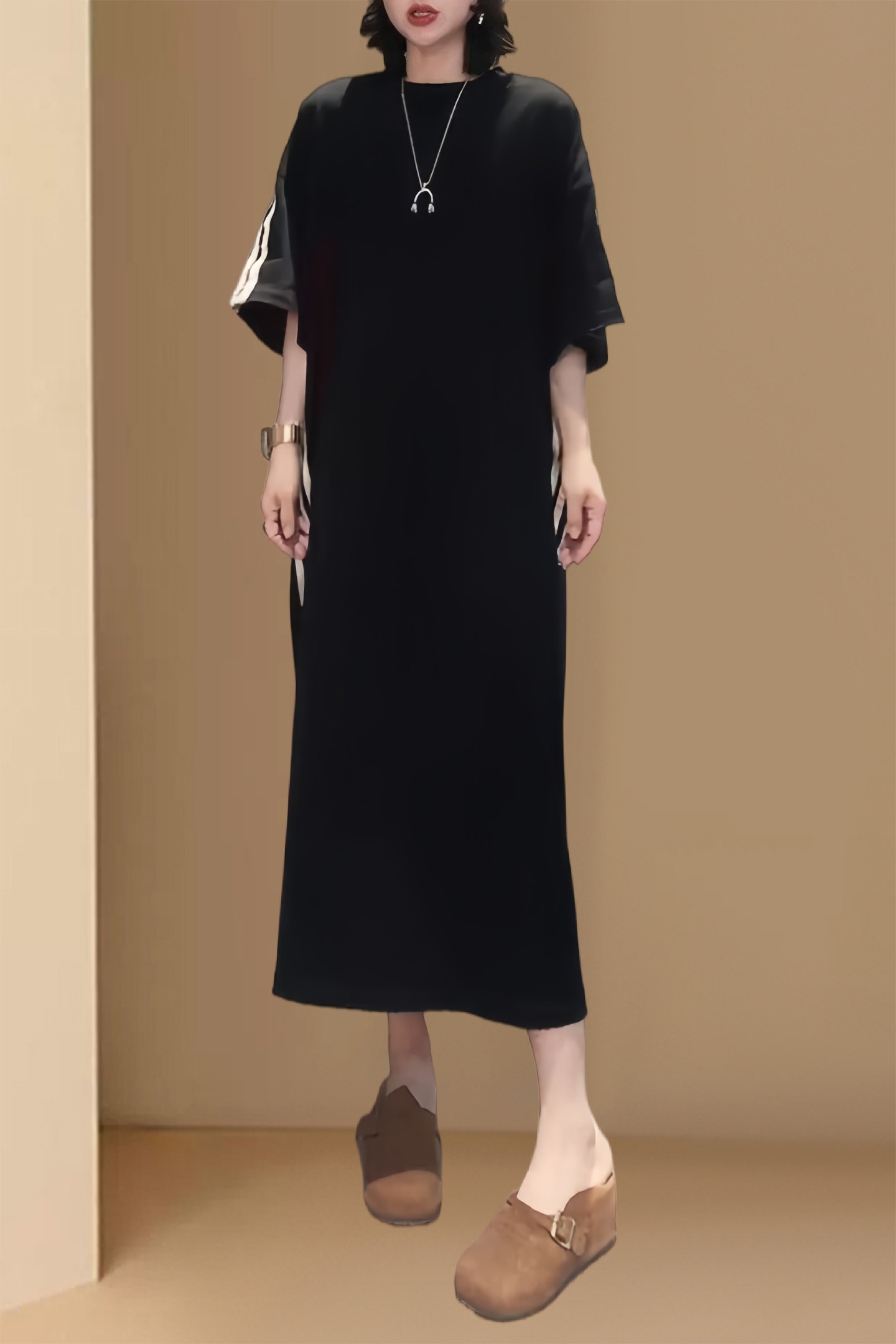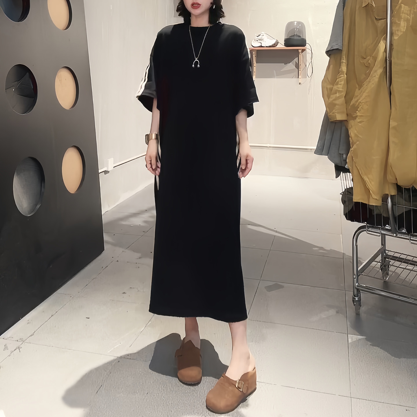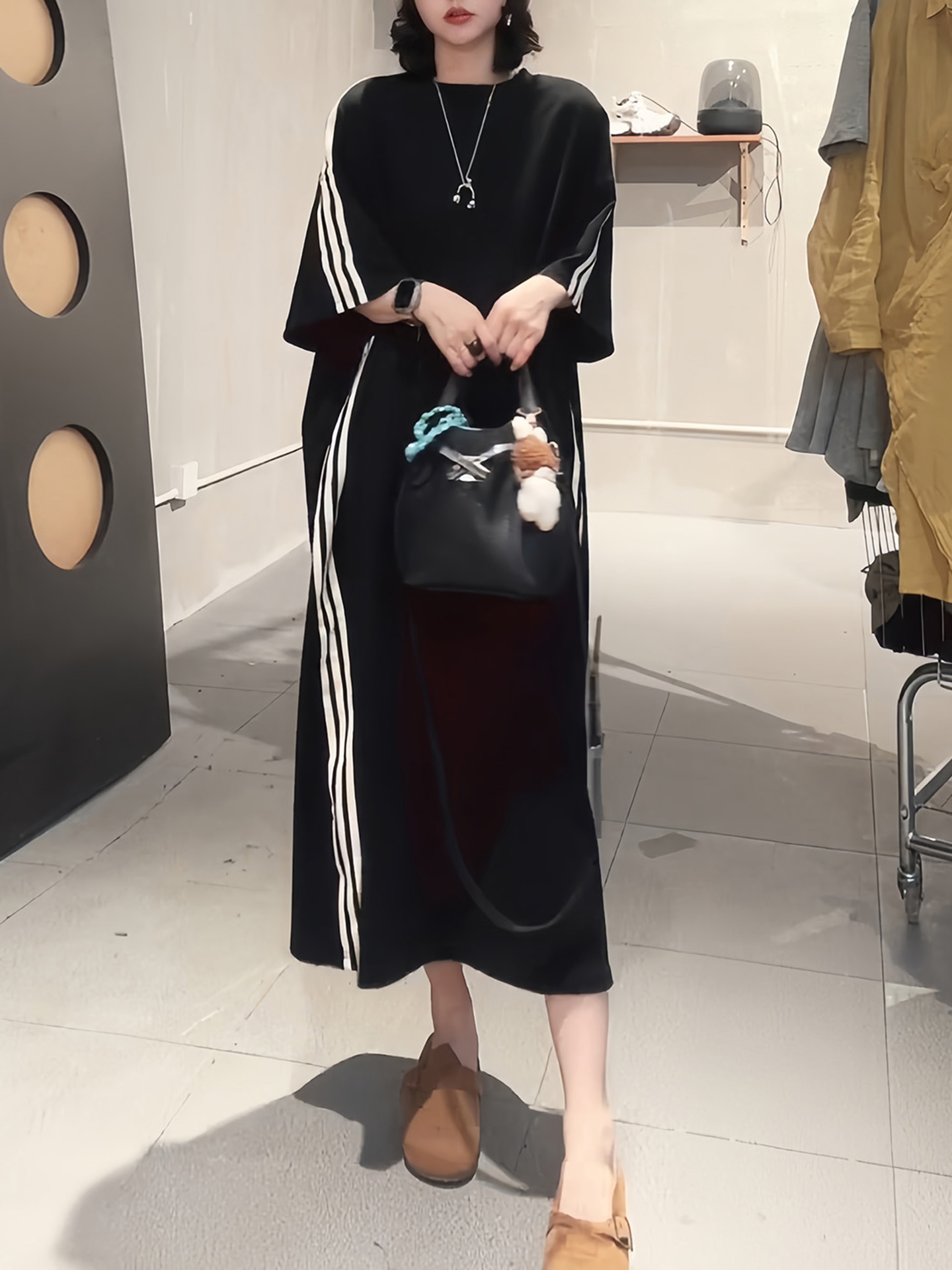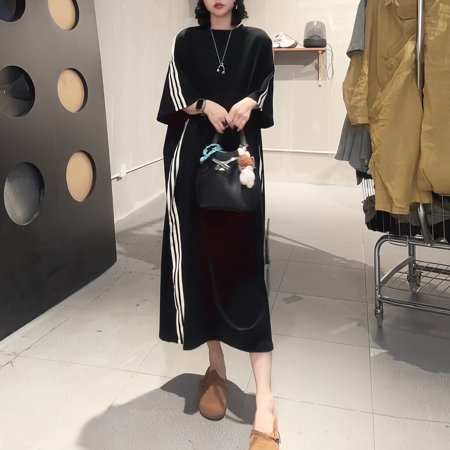 경관 그림 한 부서 검정색 스트라이프 드레스 새로운 여름 고유 한 아름다운 품격 캐주얼 루즈핏 슬림해 보이는 롱 스커트