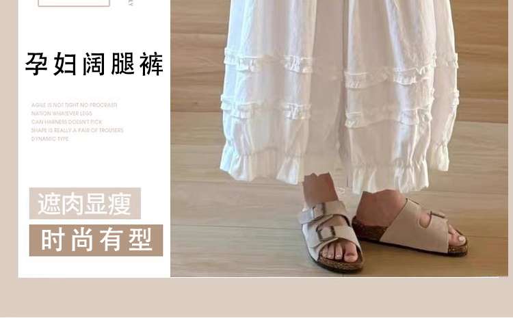 지금 임산부 프릴 민소매 셔츠 조끼 베스트 맨위 코디 캐주얼 와이드 레그 팬츠 두 조각 여성 세트