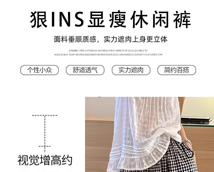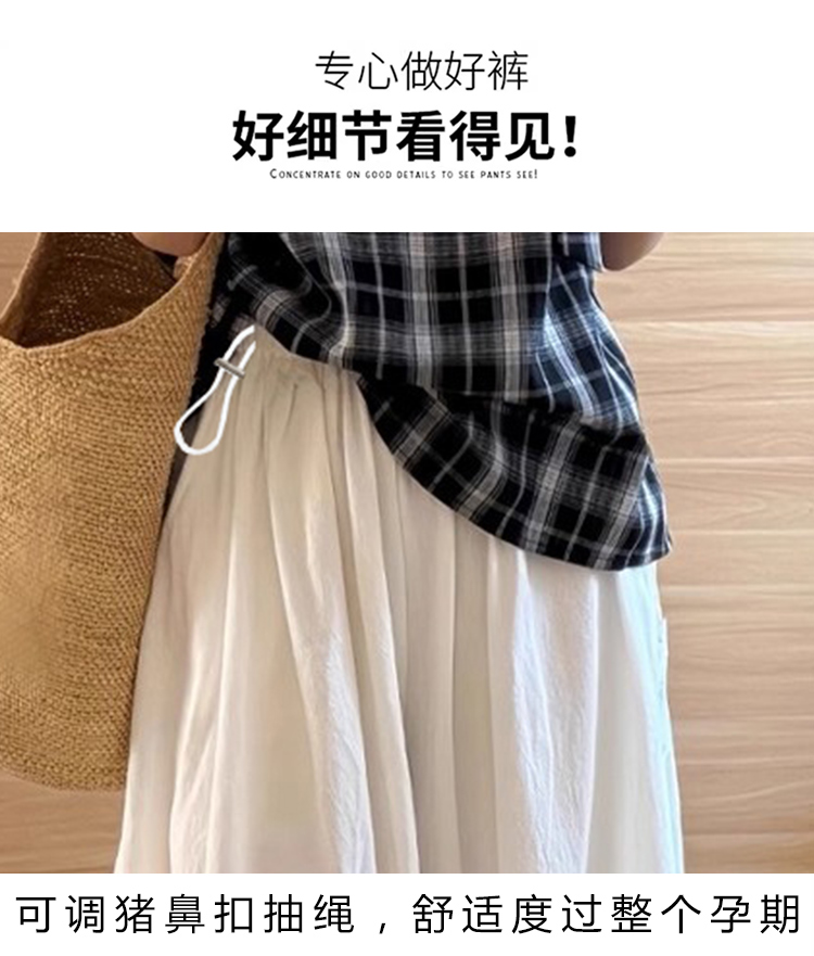 지금 임산부 빅 사이즈 느긋한 바람 달콤함 체크무늬 대 넓은 다리 배 모양 슬림해 보이는 9 포인트 캐주얼 배기 바지