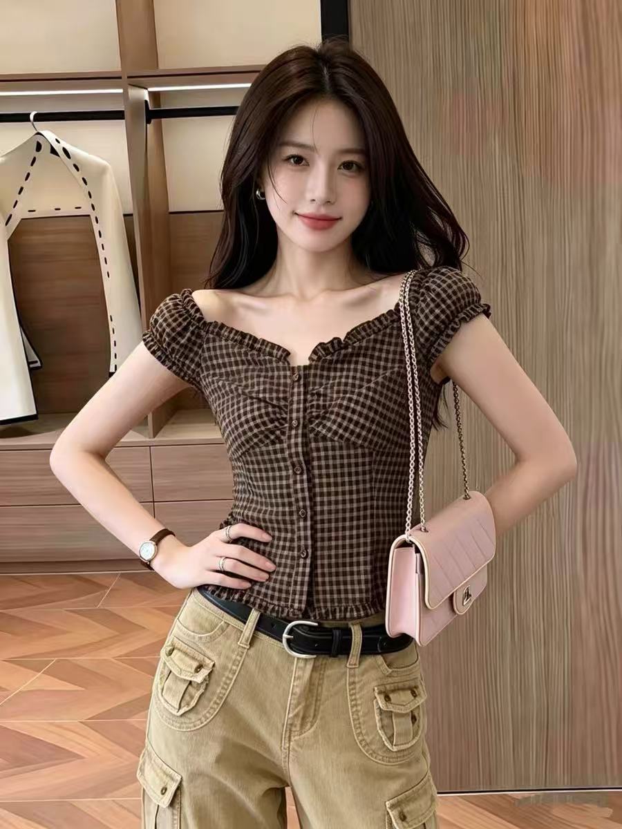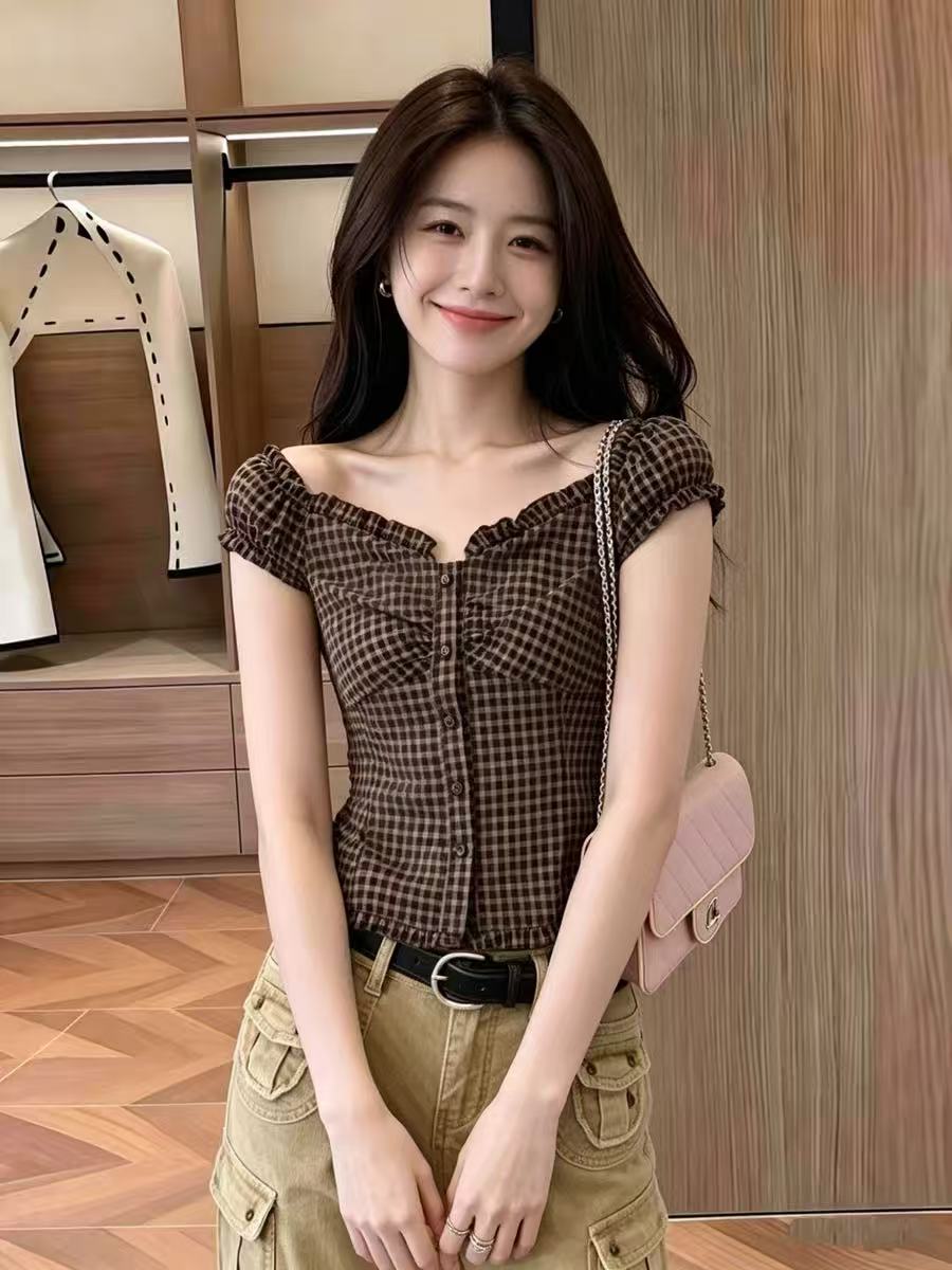 프랑스식 섹시함 오프숄더 프릴 레이스 셔츠 맨위 여성 디자인 센스 오프숄더 쉬폰 셔츠 작은 셔츠 여름