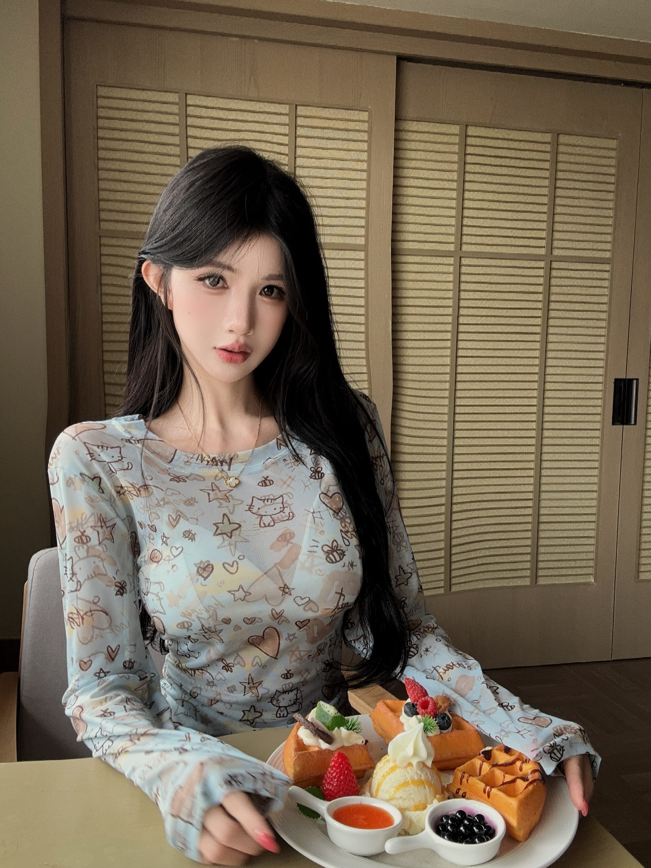 한 부서 도파민 바람 u 칼라 긴팔 티셔츠 여성 여름 얇은 스타일 몸매 가꾸기 슬림해 보이는 다용도 자외선 차단 블라우스 핫걸 맨위