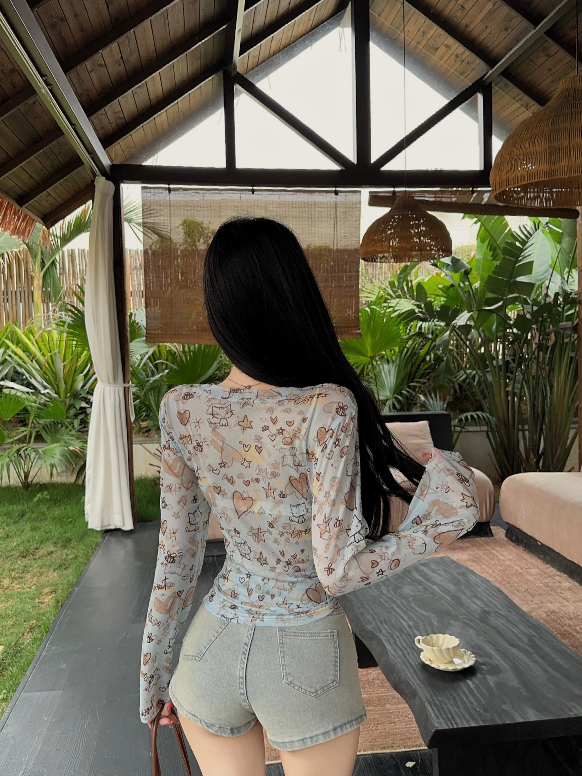 뒤로 홀로우 아웃 얇은 스타일 자외선 차단 블라우스 긴팔 티셔츠 여성 2026 새로운 고유 한 아름다운 디자인 센스 여름 맨위